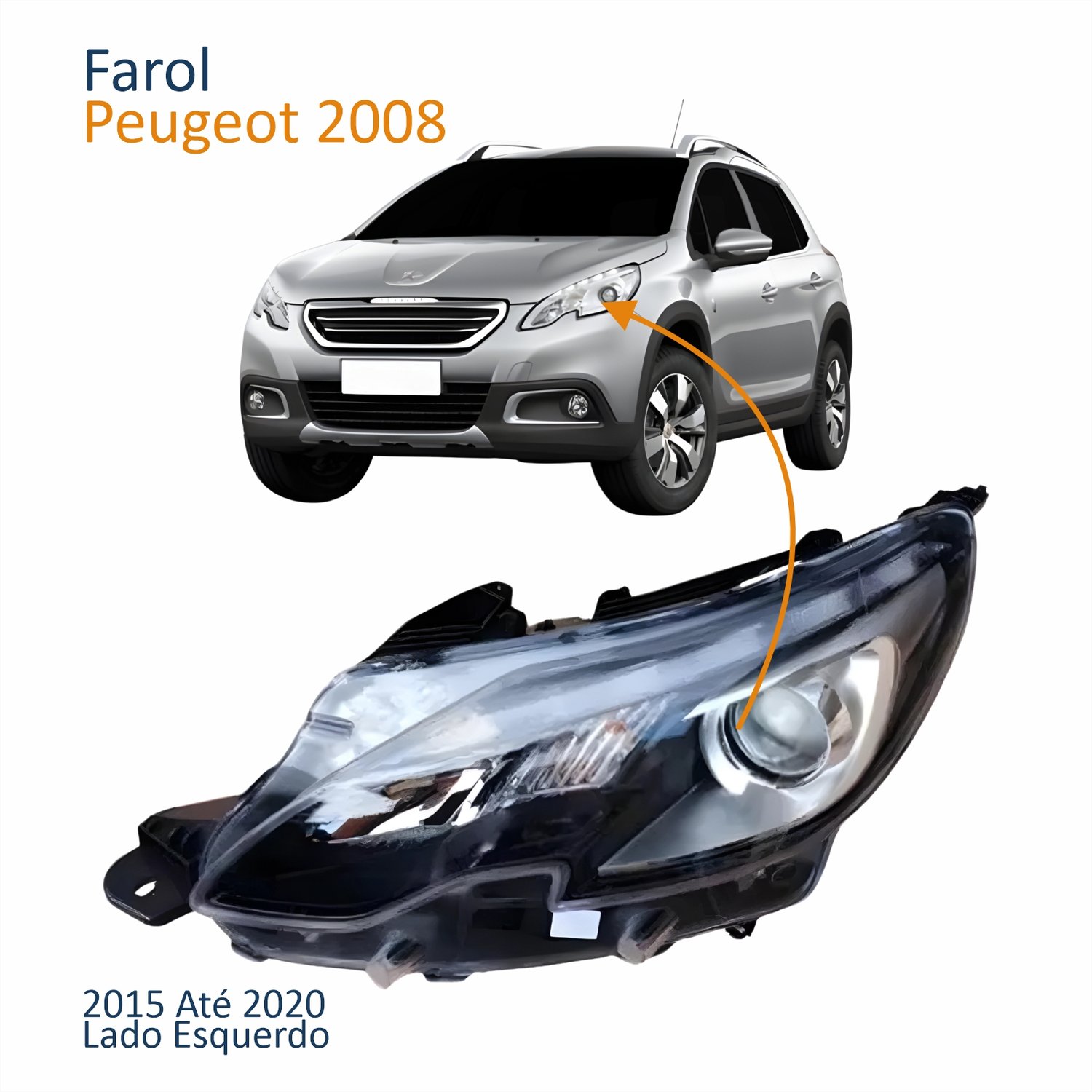 Farol Principal Peugeot 2008 2015 Até 2020 Máscara Negra Com Led Com Projetor Lado Esquerdo Motorista