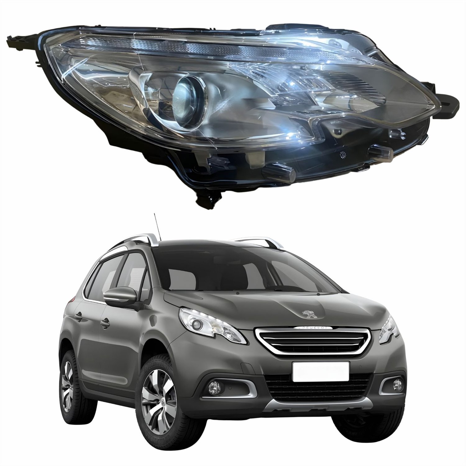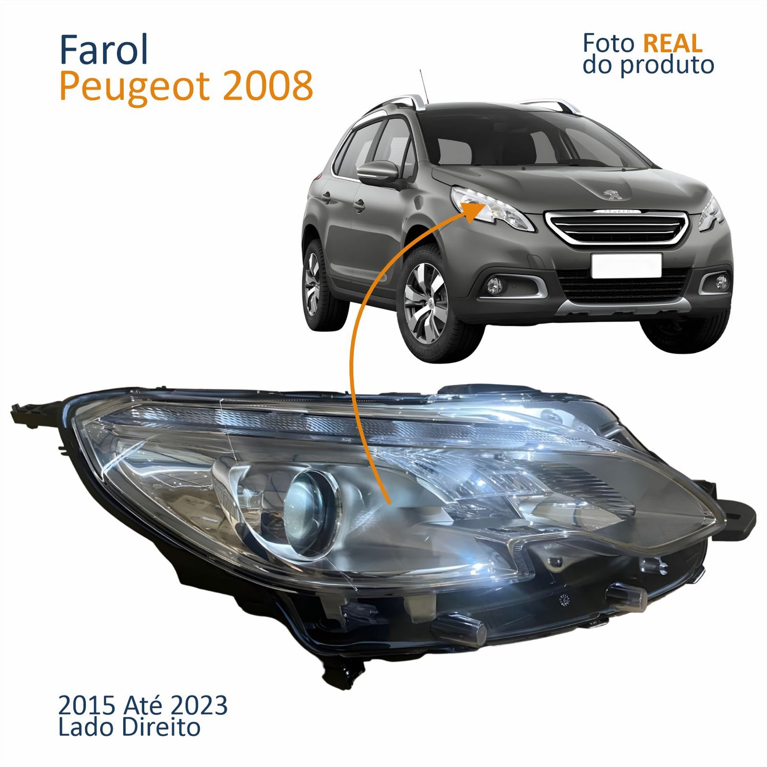 Farol Principal Peugeot 2008 2015 Até 2023 Máscara Cromada Lado Direito Passageiro