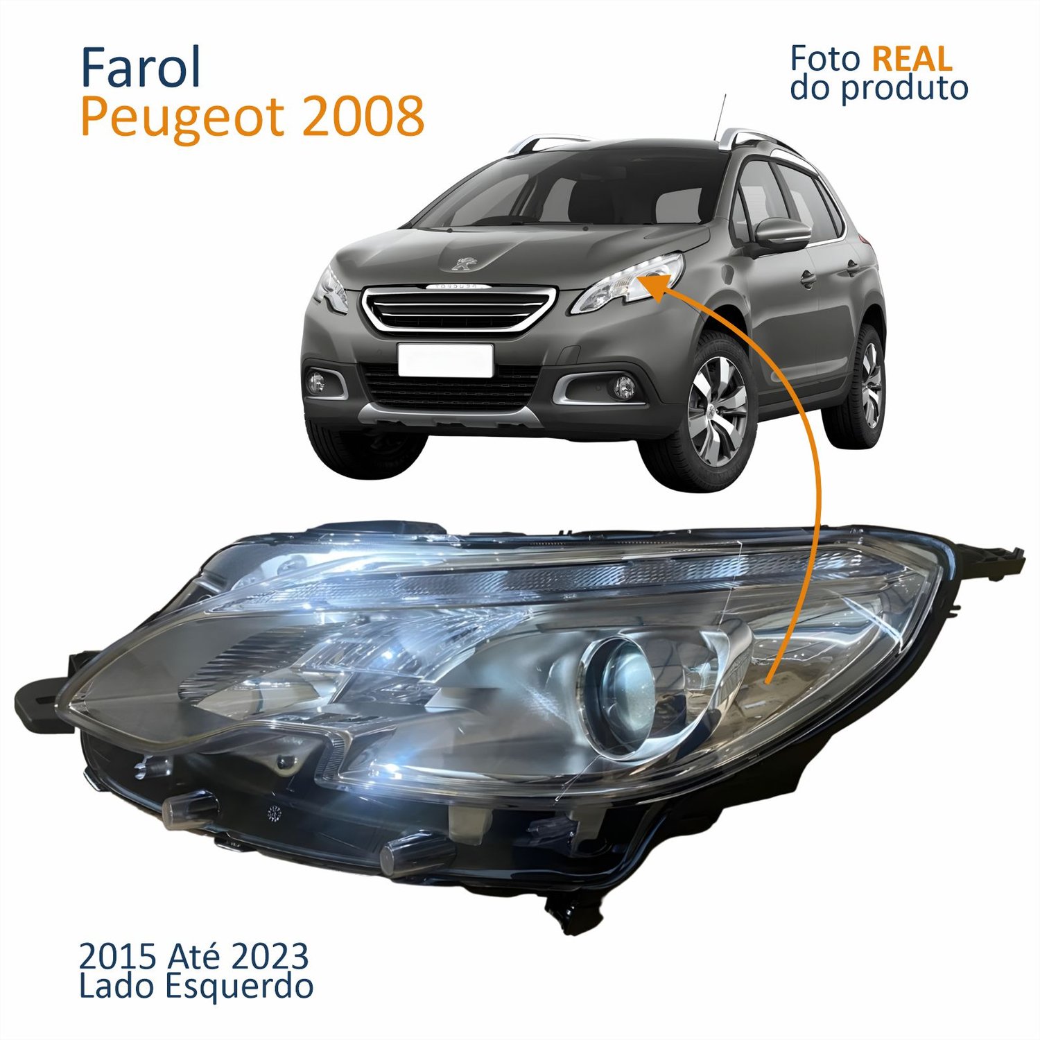 Farol Principal Peugeot 2008 2015 Até 2023 Máscara Cromada Lado Esquerdo Motorista