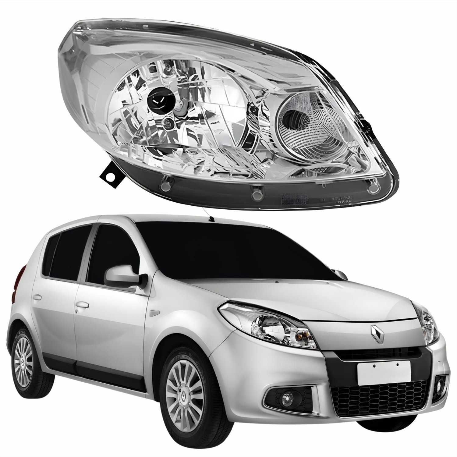 Farol Principal Renault Sandero 2012 2013 2014 Máscara Cromada Lado Direito Passageiro