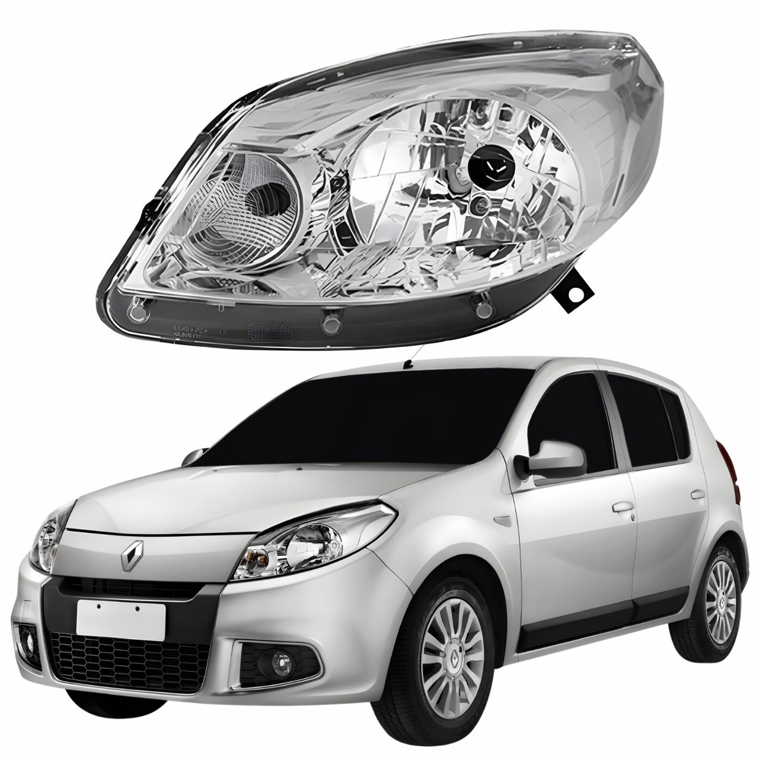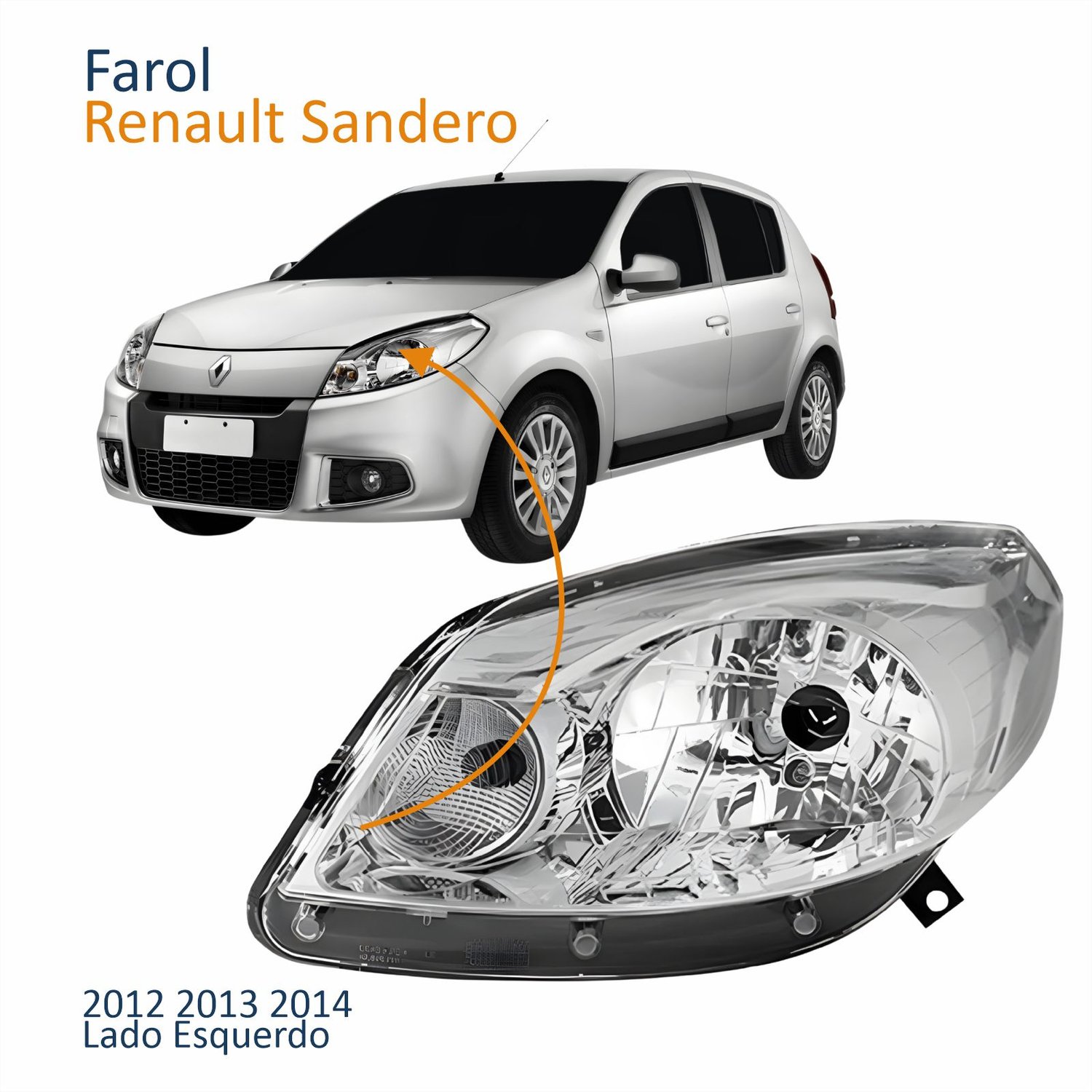 Farol Principal Renault Sandero 2012 2013 2014 Máscara Cromada Lado Esquerdo Motorista