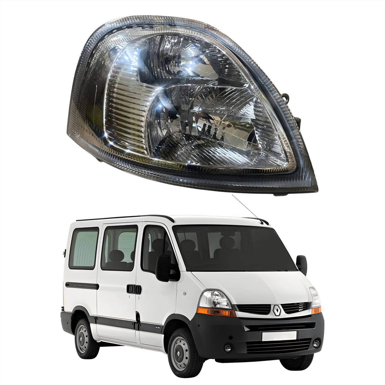 Farol Principal Renaut Master 2008 2009 2010 2011 2012 Máscara Cromada Lado Direito Passageiro