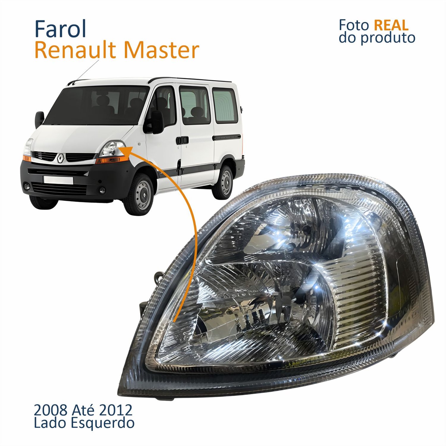 Farol Principal Renaut Master 2008 2009 2010 2011 2012 Máscara Cromada Lado Esquerdo Motorista