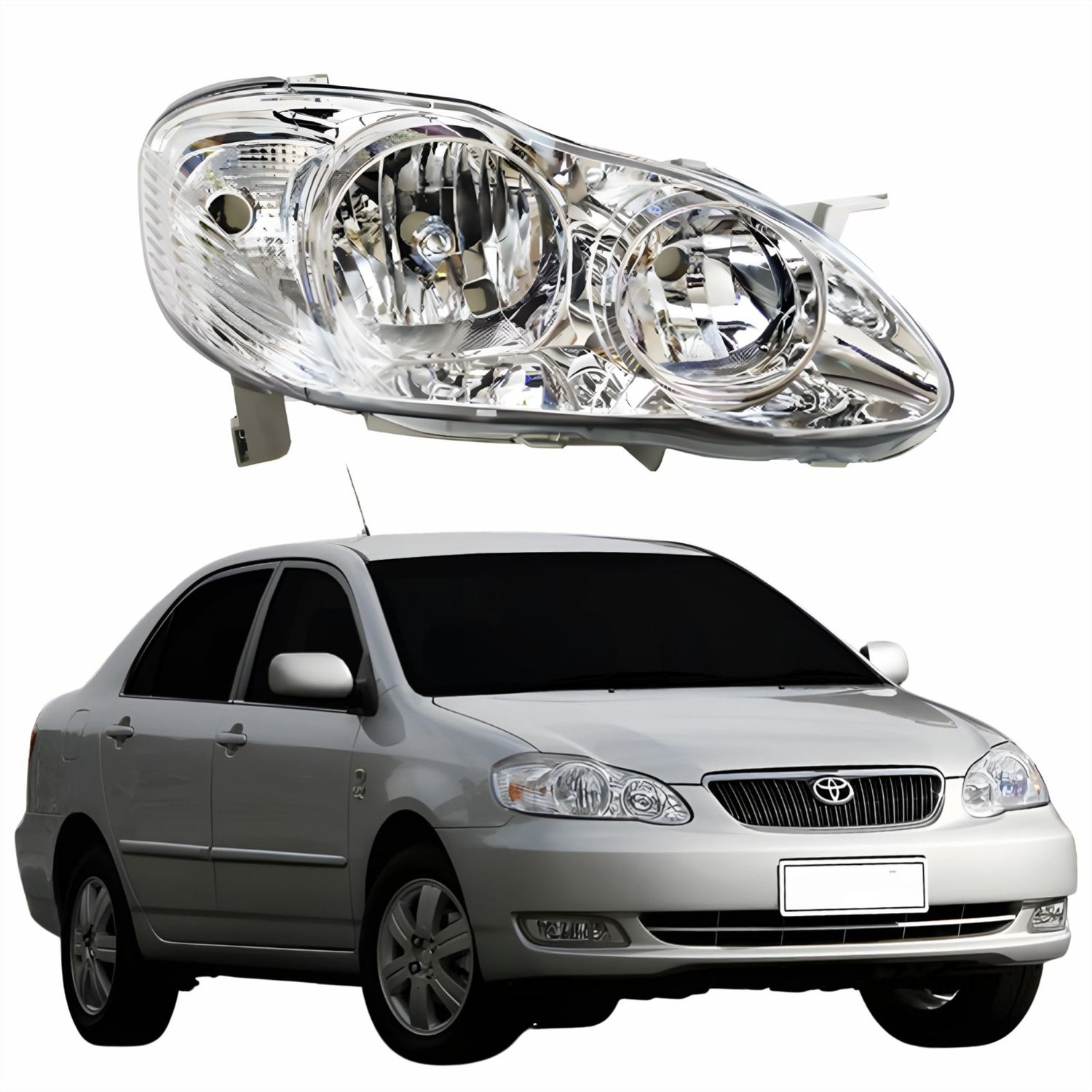 Farol Principal Toyota Corolla 2003 Até 2008 Máscara Cromada Com Lente Frisada Lado Direito Passageiro