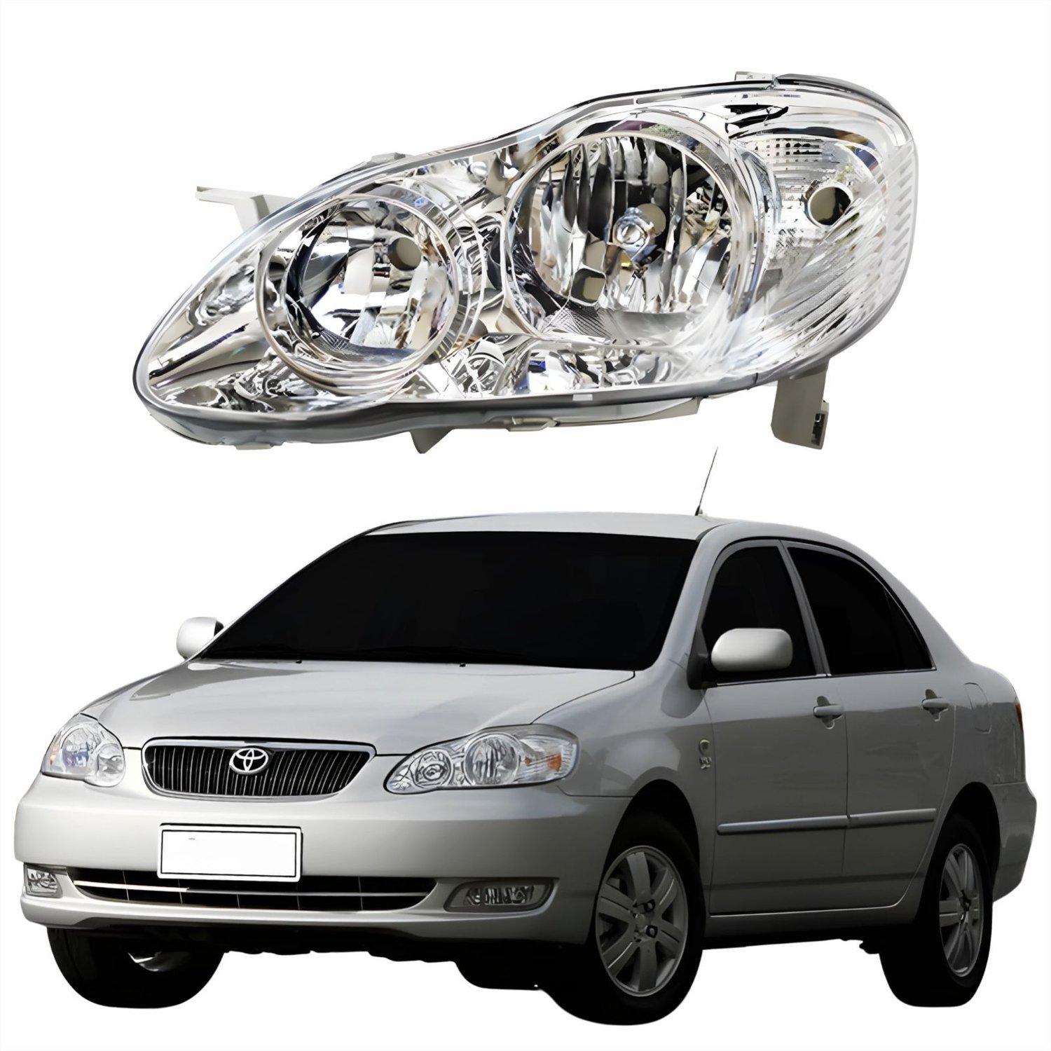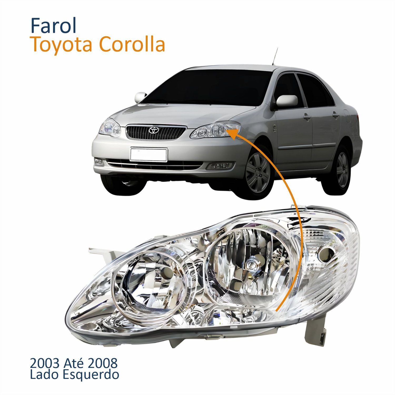Farol Principal Toyota Corolla 2003 Até 2008 Máscara Cromada Com Lente Frisada Lado Esquerdo Motorista