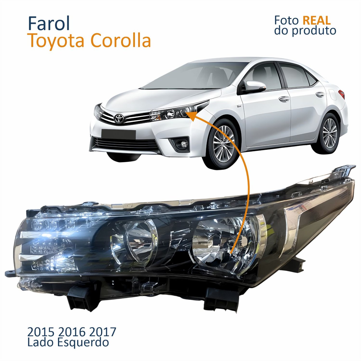 Farol Principal Toyota Corolla 2015 2016 2017 Com Led Lado Esquerdo Motorista