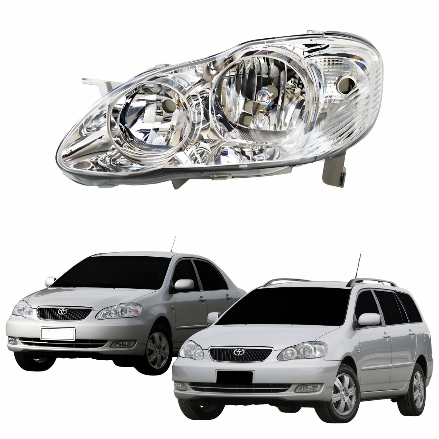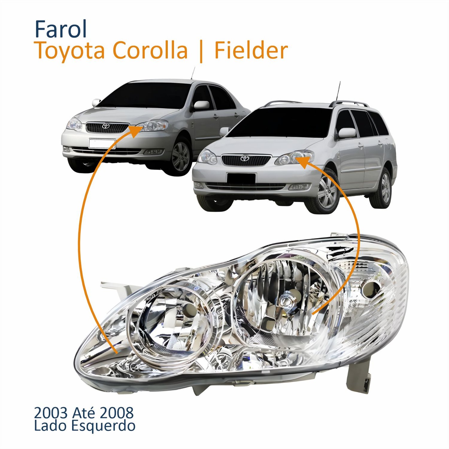 Farol Principal Toyota Corolla Fielder 2003 Até 2008 Máscara Cromada Com Lente Frisada Lado Esquerdo Motorista