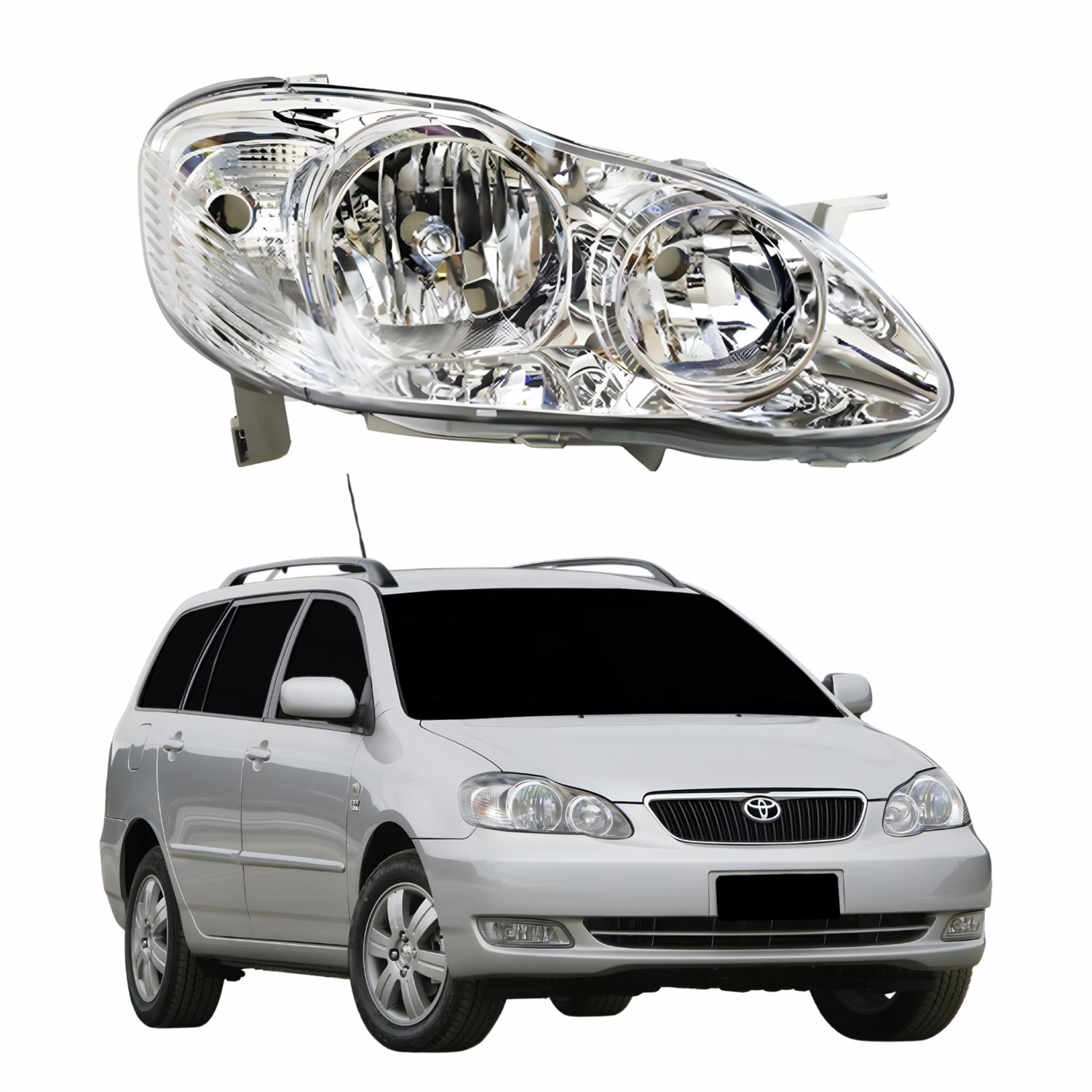 Farol Principal Toyota Corolla Fielder 2003 Até 2008 Máscara Cromada Com Lente Frisada Lado Direito PassageiroTamanho: Único