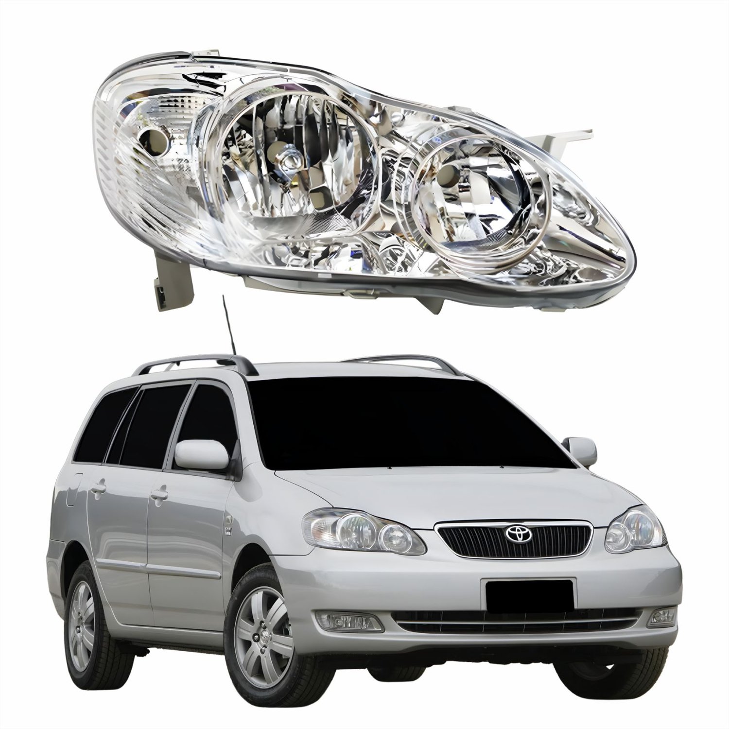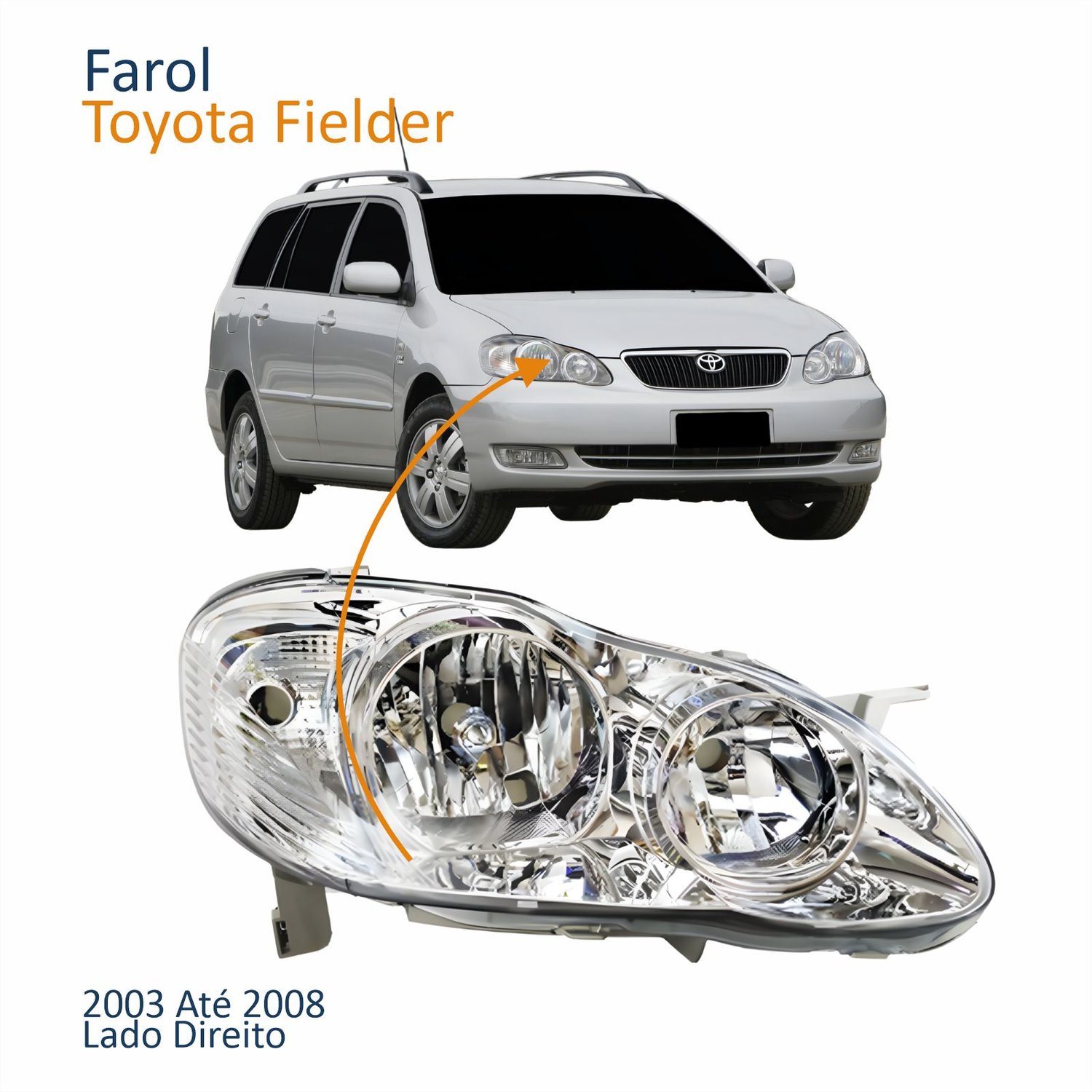 Farol Principal Toyota Corolla Fielder 2003 Até 2008 Máscara Cromada Com Lente Frisada Lado Direito PassageiroLado: Único
