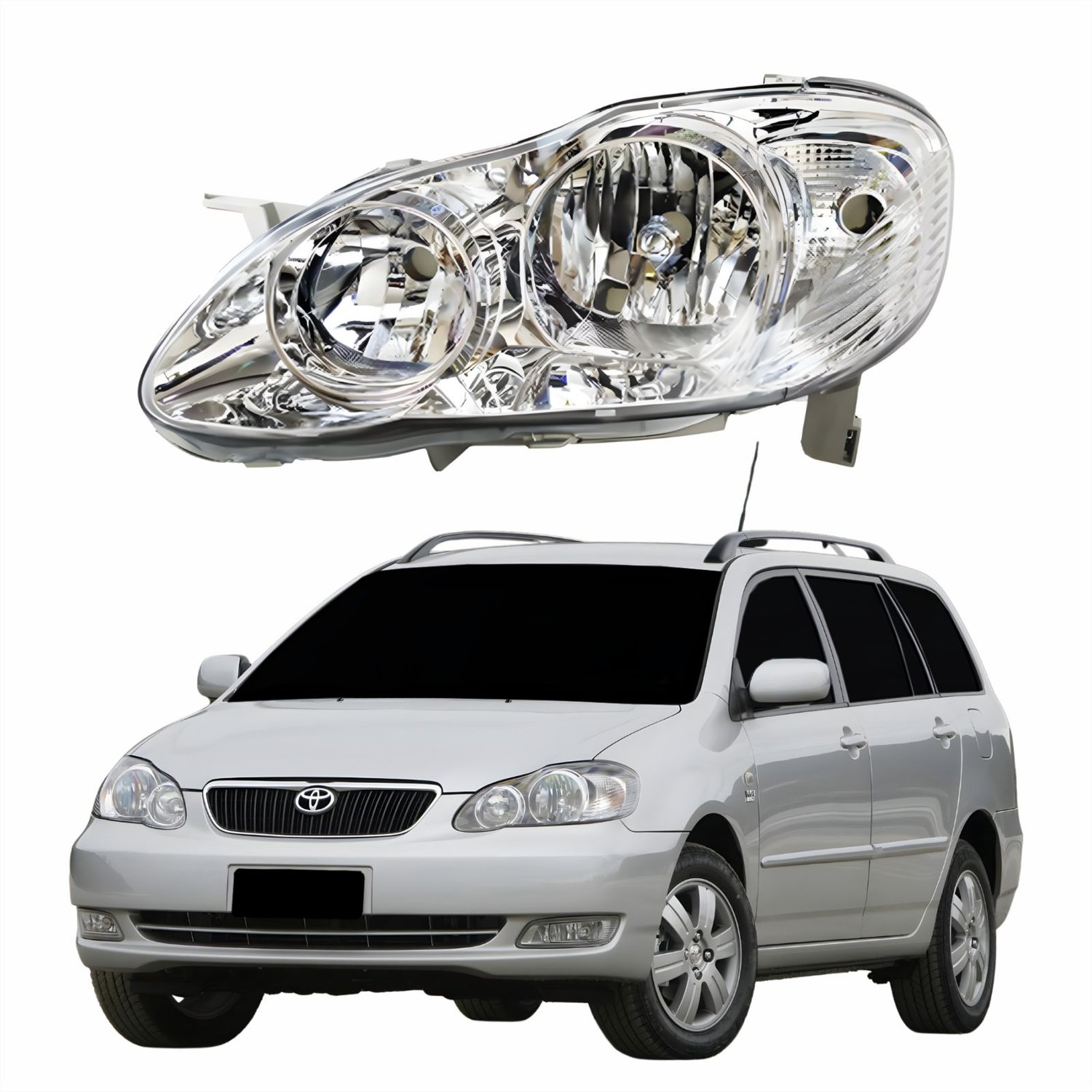 Farol Principal Toyota Corolla Fielder 2003 Até 2008 Máscara Cromada Com Lente Frisada Lado Esquerdo MotoristaLado: Único