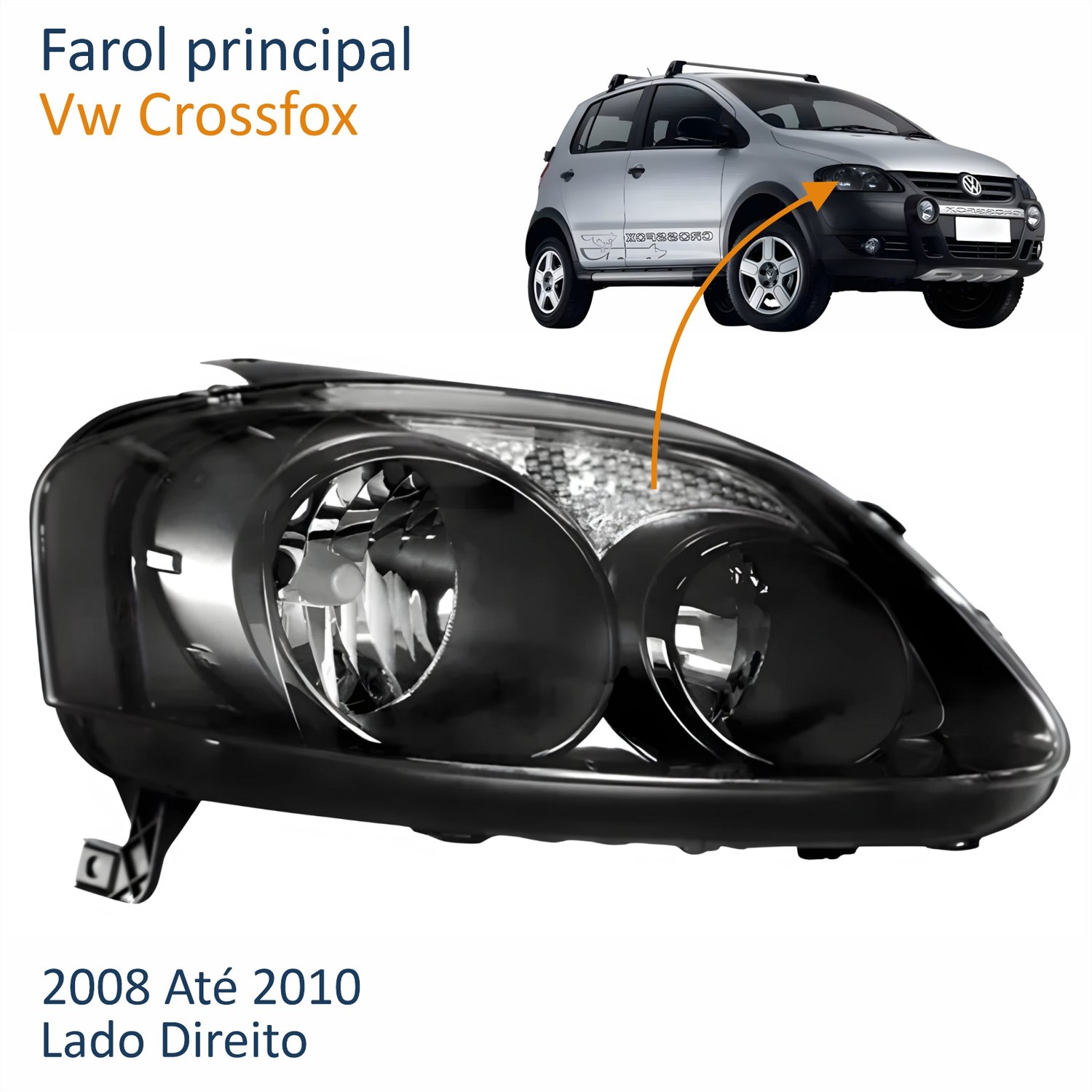 Farol Principal Vw Crossfox 2008 2009 2010 Máscara Negra Lado Direito Passageiro