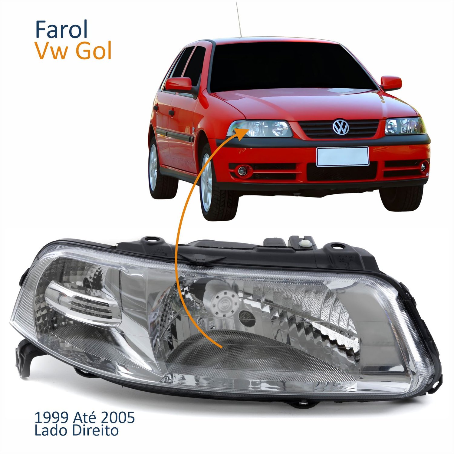 Farol Principal Vw Gol 1999 Até 2005 Foco Simples Máscara Cromada Lado Direito Passageiro