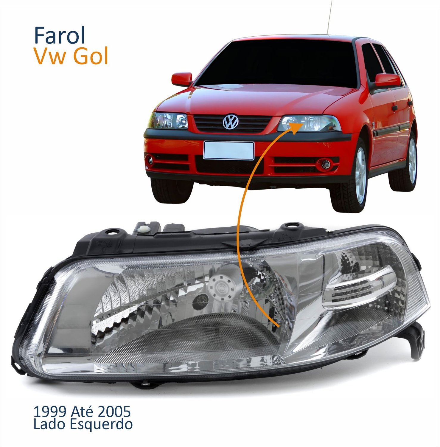 Farol Principal Vw Gol 1999 Até 2005 Foco Simples Máscara Cromada Lado Esquerdo Motorista