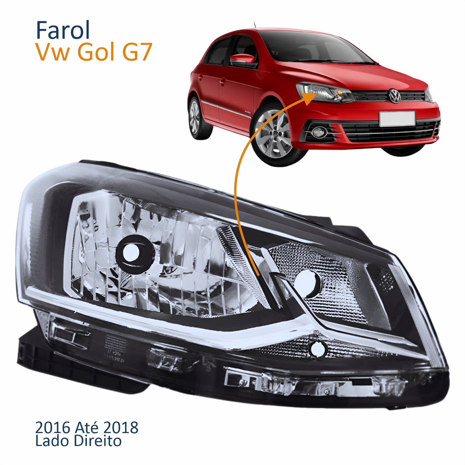 Farol Principal Vw Gol G7 2016 Até 2018 Voyage G7 2017 2018 Saveiro G7 2018 Até 2020 Foco Simples Friso Cromado Lado Direito PassageiroLado: Único
