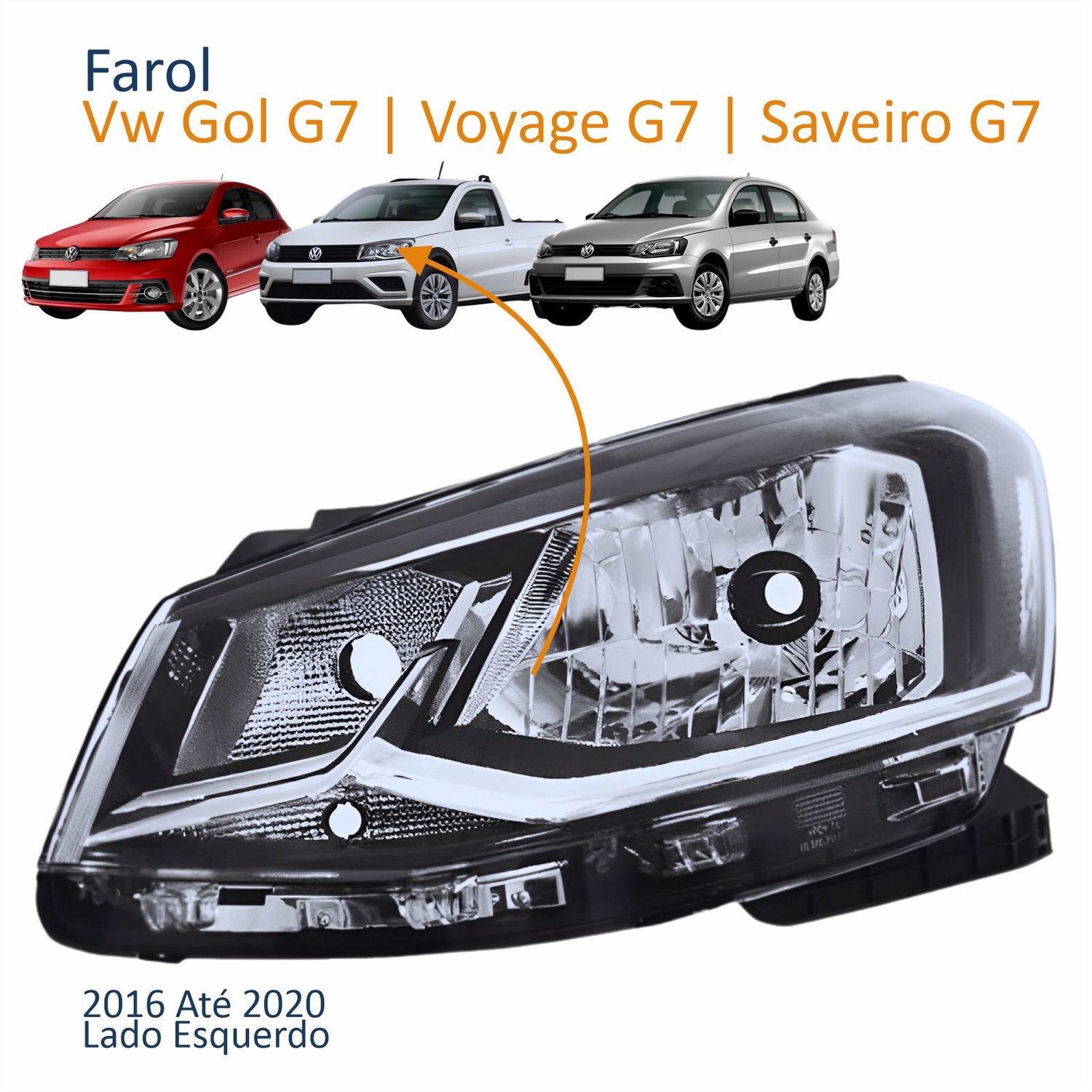 Farol Principal Vw Gol G7 2016 Até 2018 Voyage G7 2017 2018 Saveiro G7 2018 Até 2020 Foco Simples Friso Cromado Lado Esquerdo Motorista