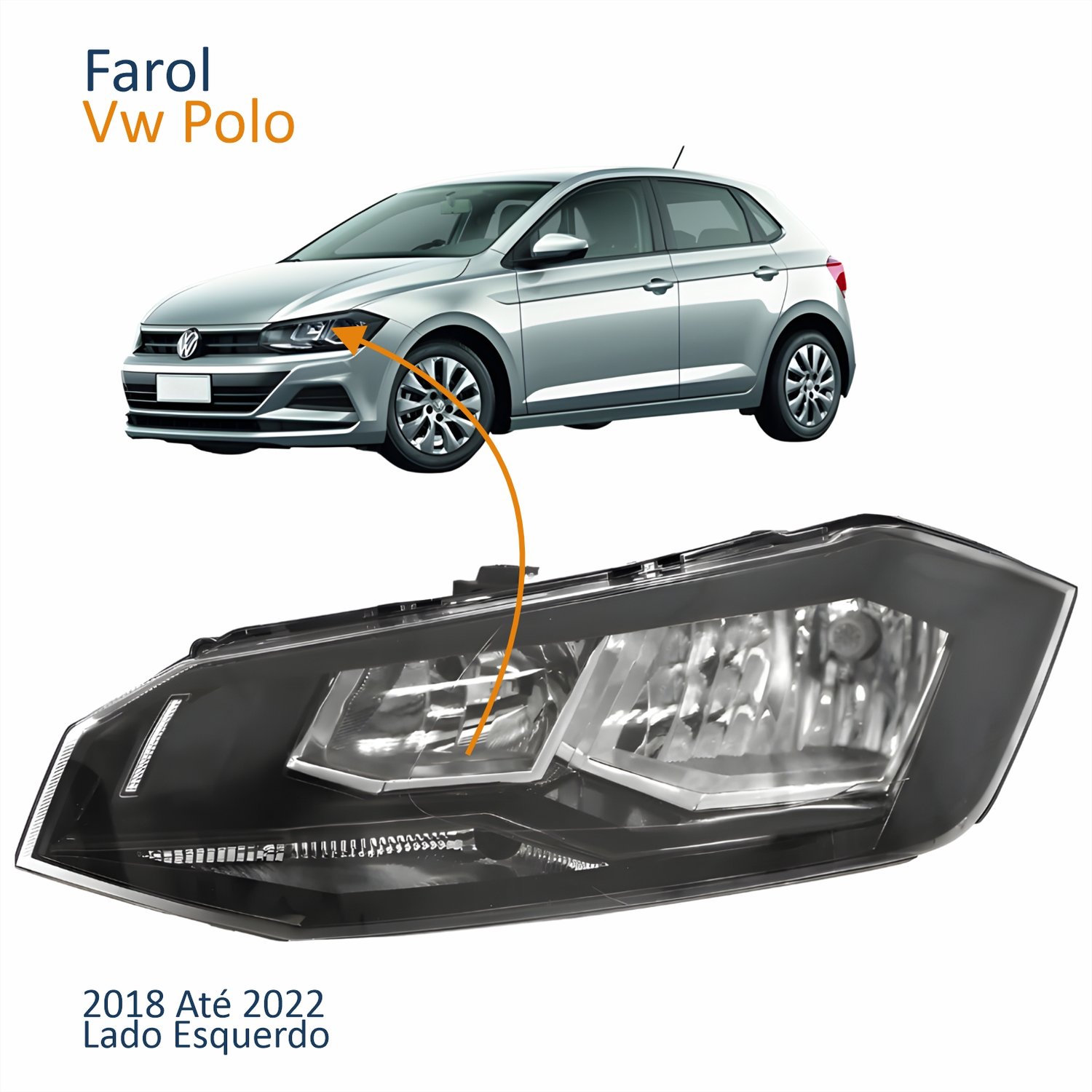 Farol Principal Vw Polo 2018 2019 2020 2021 2022 Máscara Negra Lado Esquerdo Motorista