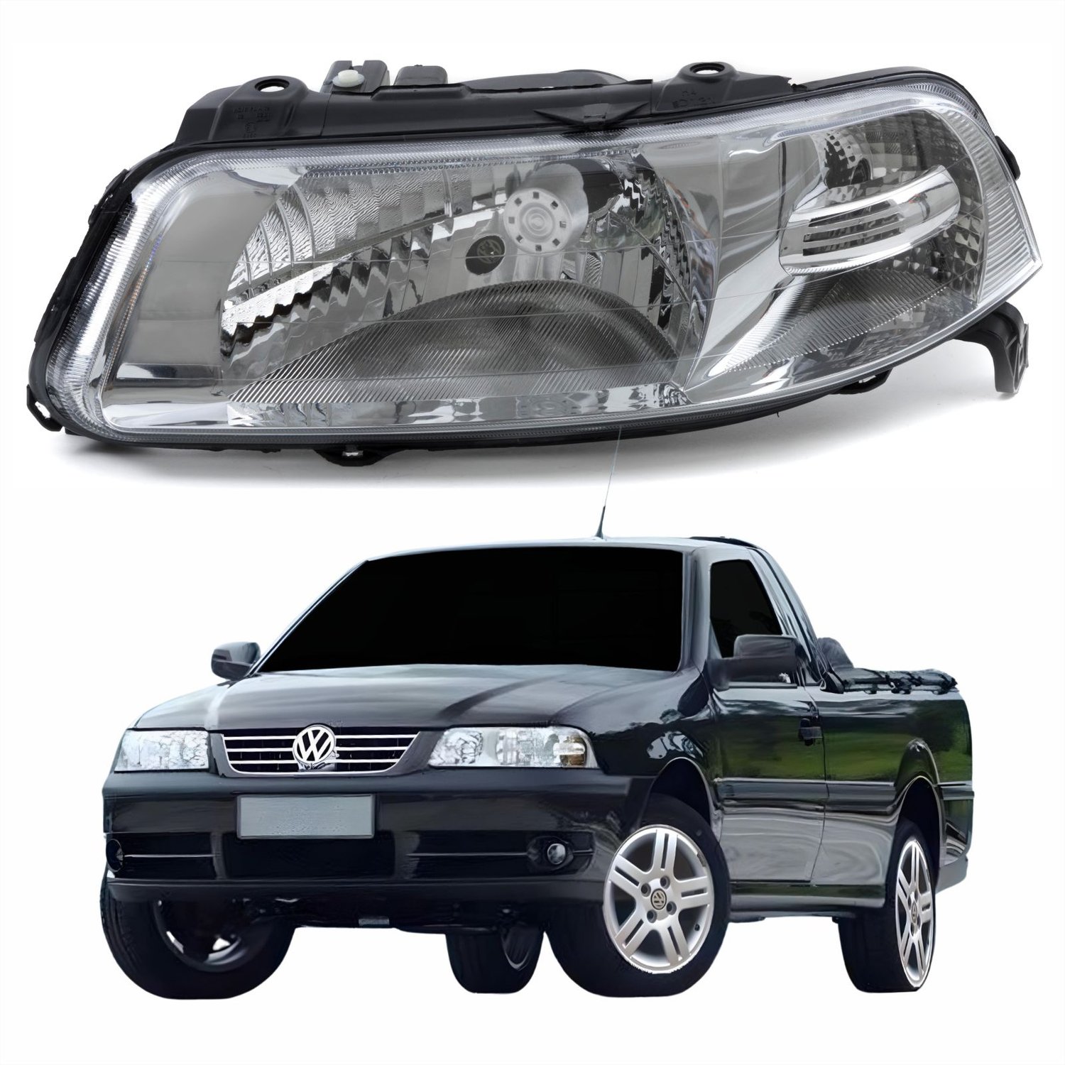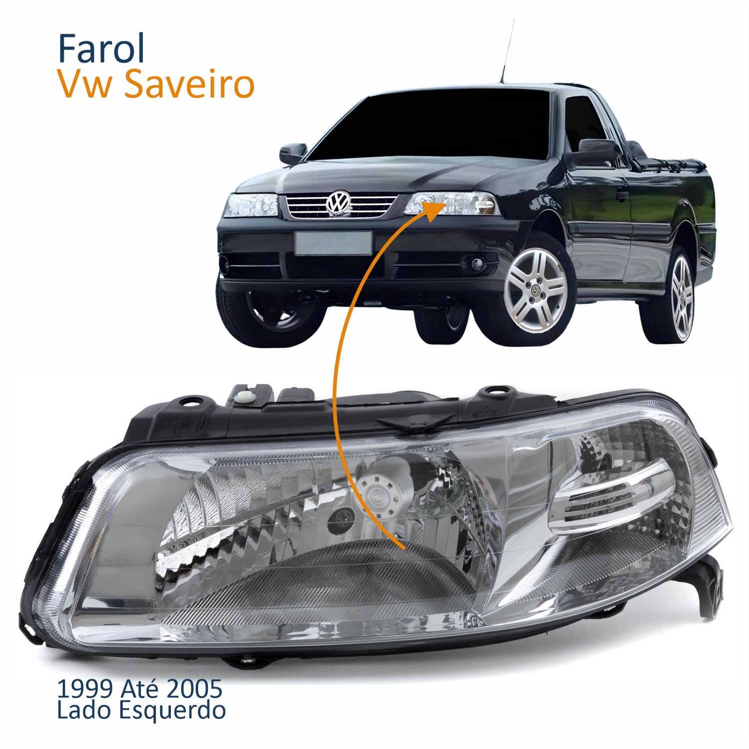 Farol Principal Vw Saveiro 1999 Até 2005 Foco Simples Máscara Cromada Lado Esquerdo Motorista