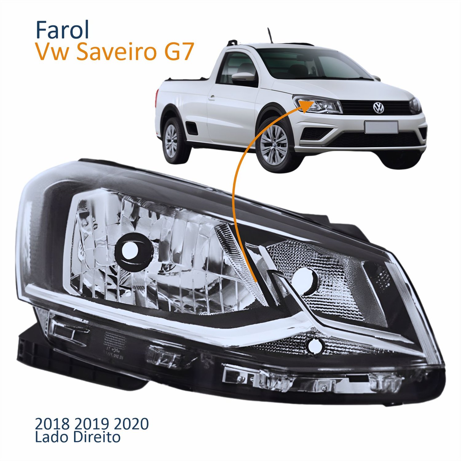 Farol Principal Vw Saveiro G7 2018 2019 2020 Foco Simples Friso Cromado Lado Direito Passageiro