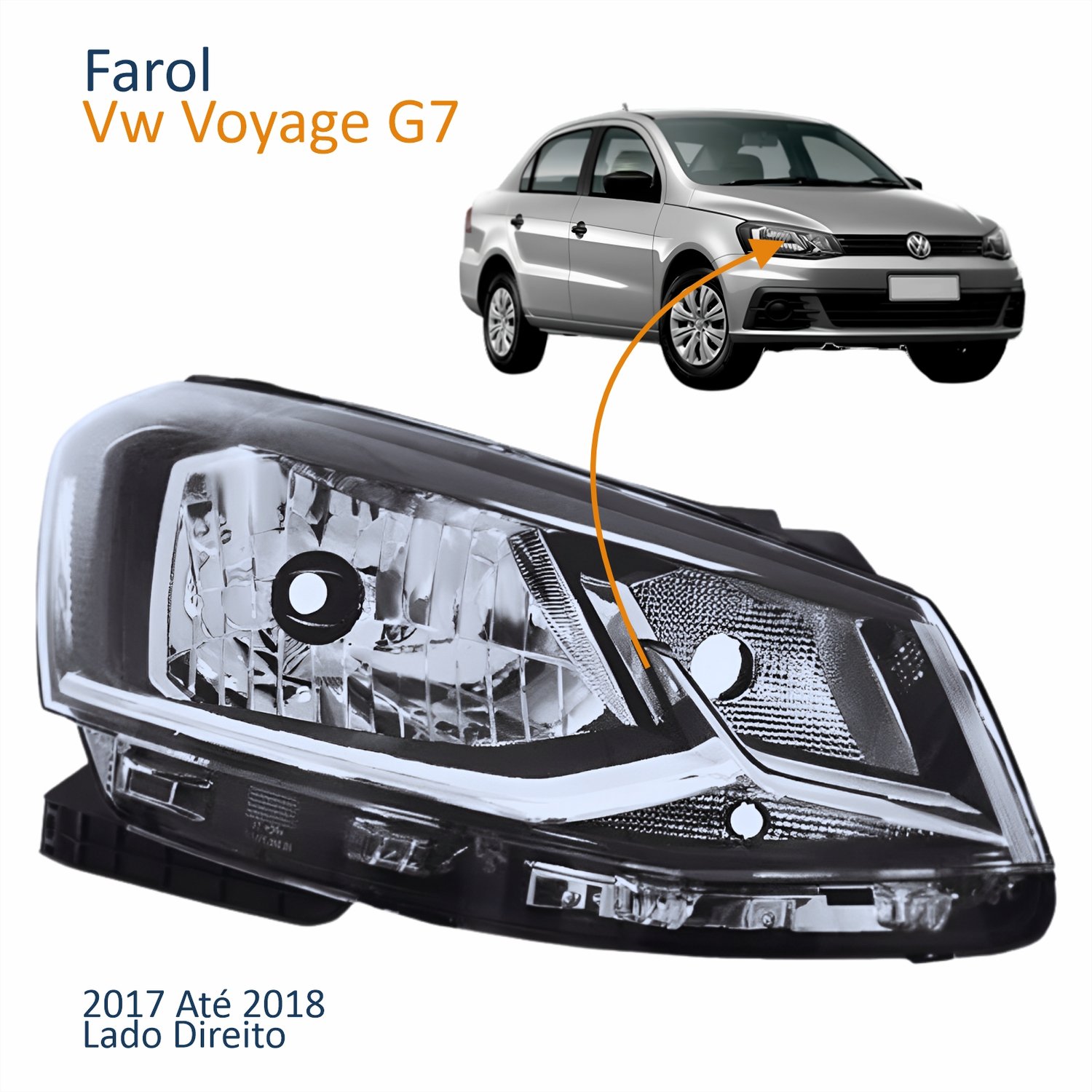 Farol Principal Vw Gol G7 2016 Até 2018 Voyage G7 2017 2018 Saveiro G7 2018 Até 2020 Foco Simples Friso Cromado Lado Direito PassageiroLado: Único
