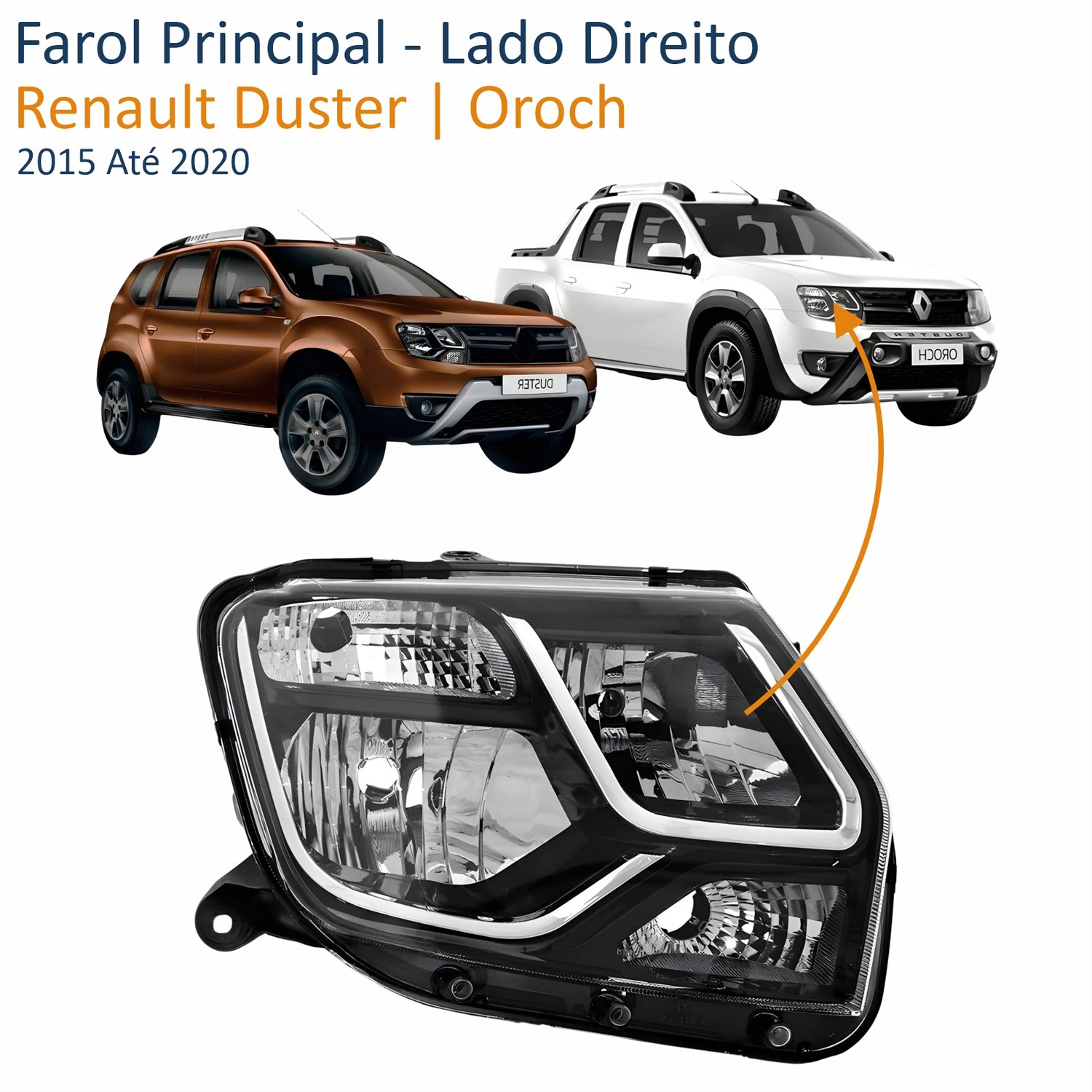 Farol Renault Duster Oroch 2015 Até 2020 Máscara Negra Lado Direito Passageiro