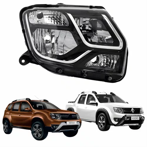Farol Renault Duster Oroch 2015 Até 2020 Máscara Negra Lado Direito Passageiro