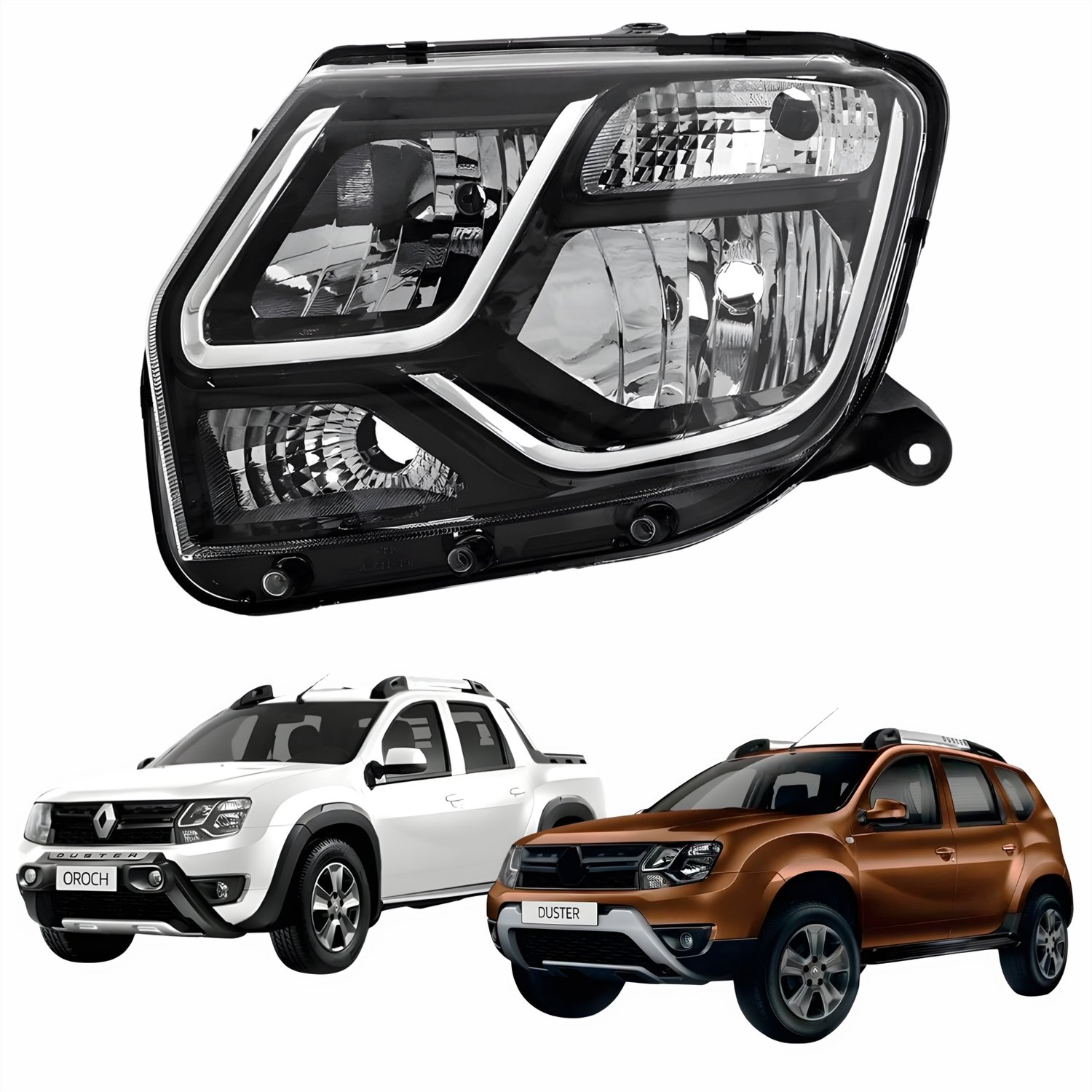 Farol Renault Duster Oroch 2015 Até 2020 Máscara Negra Lado Esquerdo Motorista