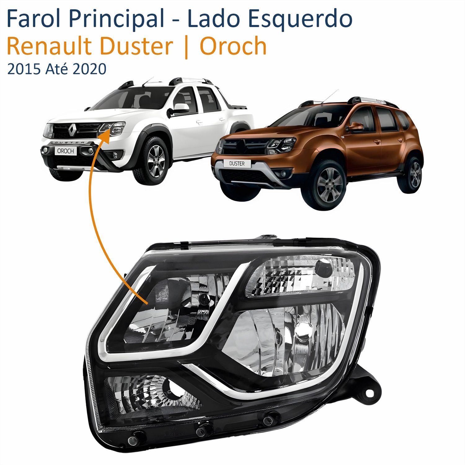 Farol Renault Duster Oroch 2015 Até 2020 Máscara Negra Lado Esquerdo Motorista