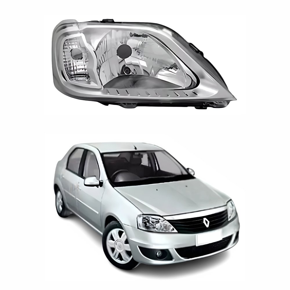 Farol Renault Logan 2007 Até 2010 Máscara Cromada Lado Direito Passageiro