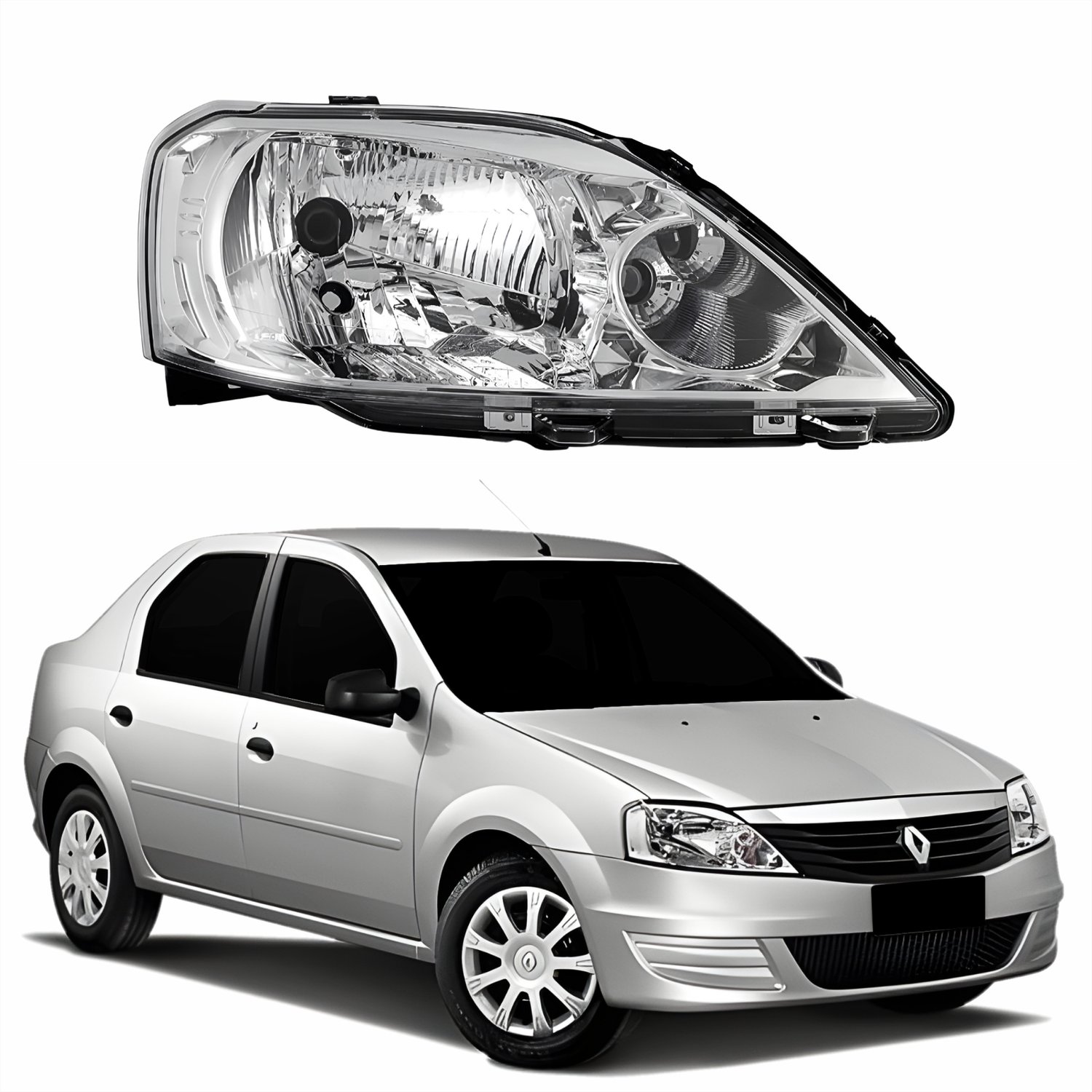 Farol Renault Logan 2011 2012 2013 2014 Máscara Cromada Lado Direito Passageiro