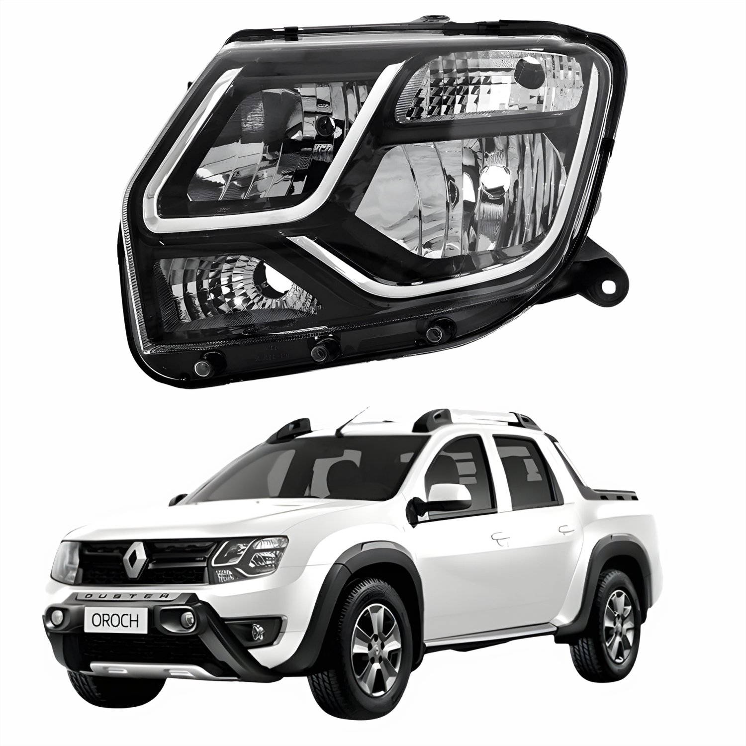 Farol Renault Duster Oroch 2015 Até 2020 Máscara Negra Lado Esquerdo MotoristaTamanho: Único