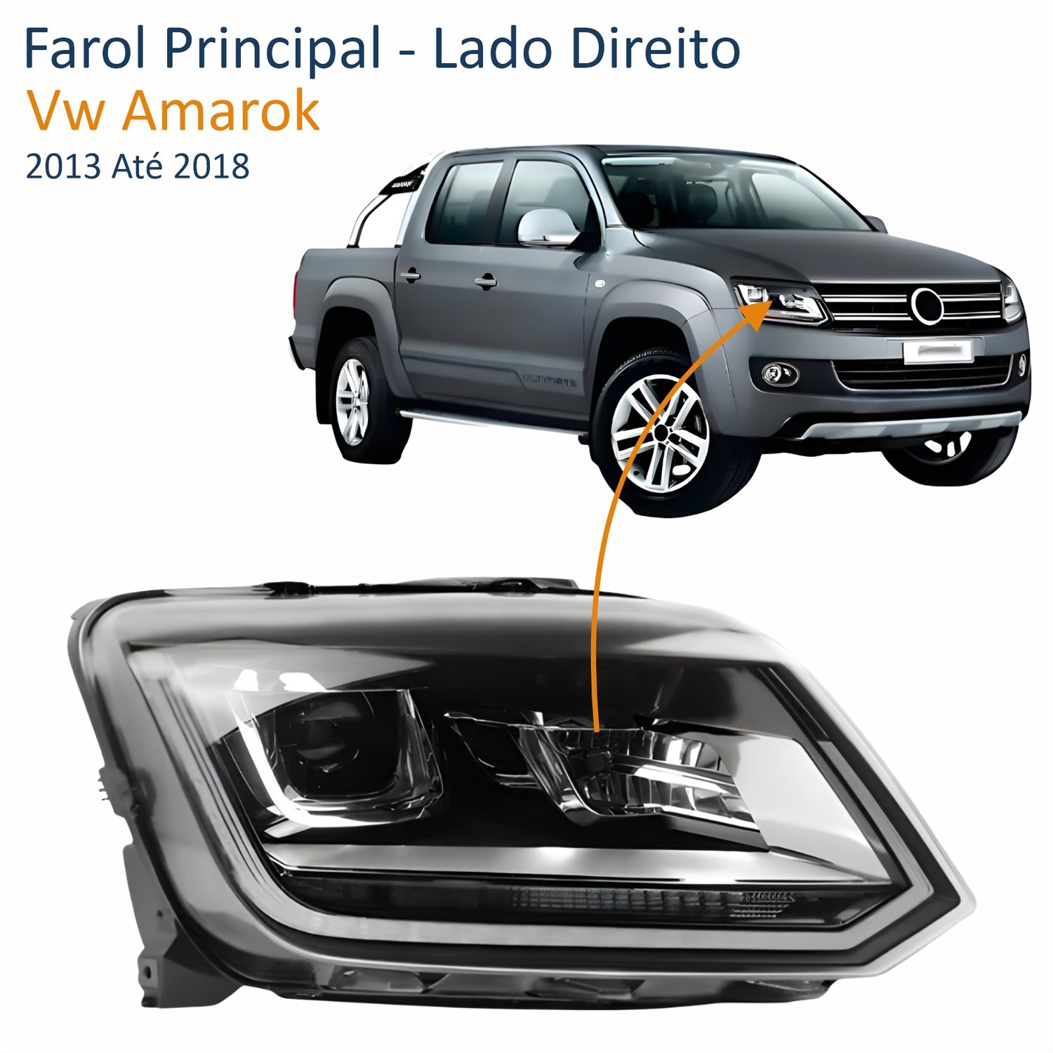 Farol Vw Amarok 2018 Até 2023 Com Led Com Projetor Lado Direito Passageiro