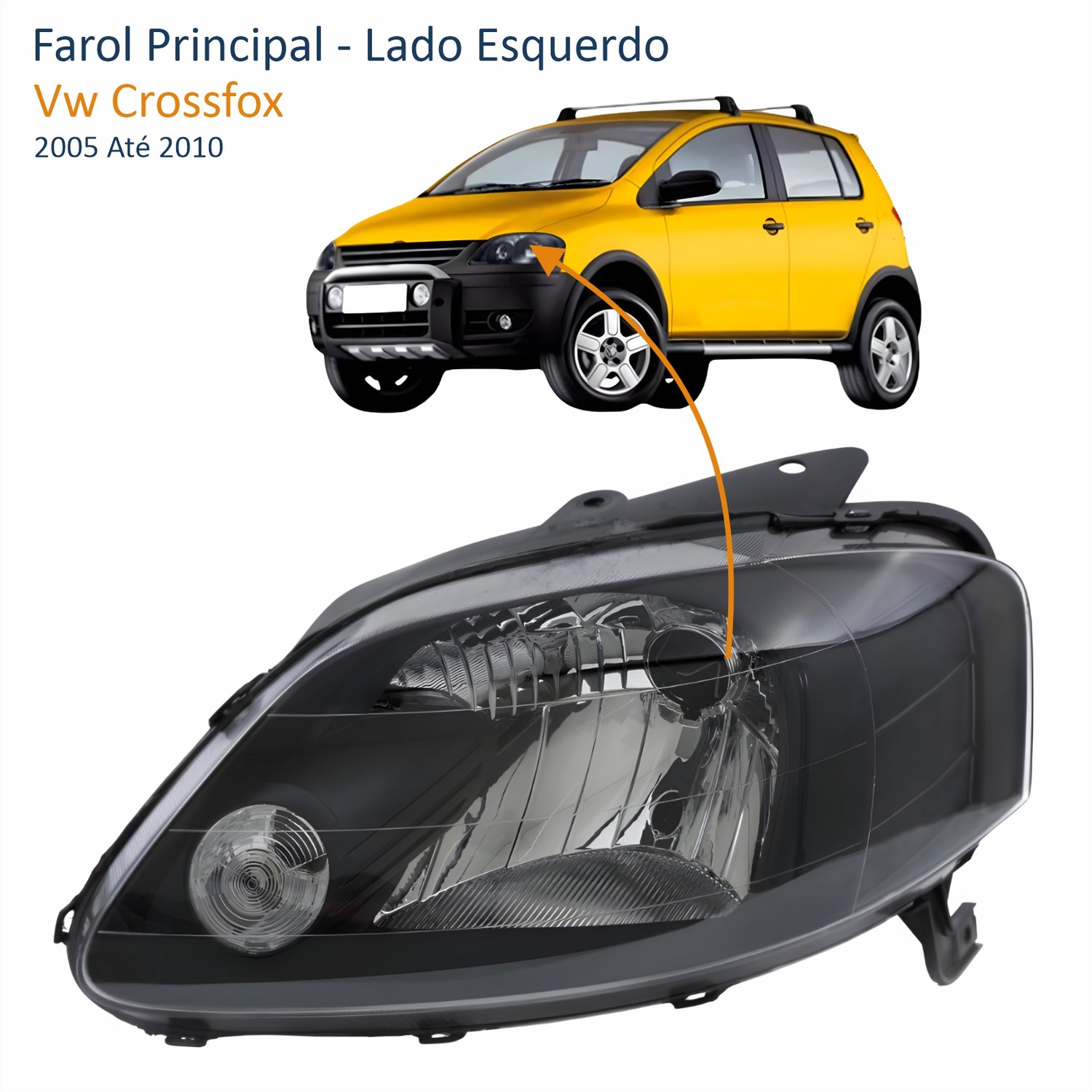 Farol Vw Crossfox 2005 Até 2010 Máscara Negra Lado Esquerdo Motorista