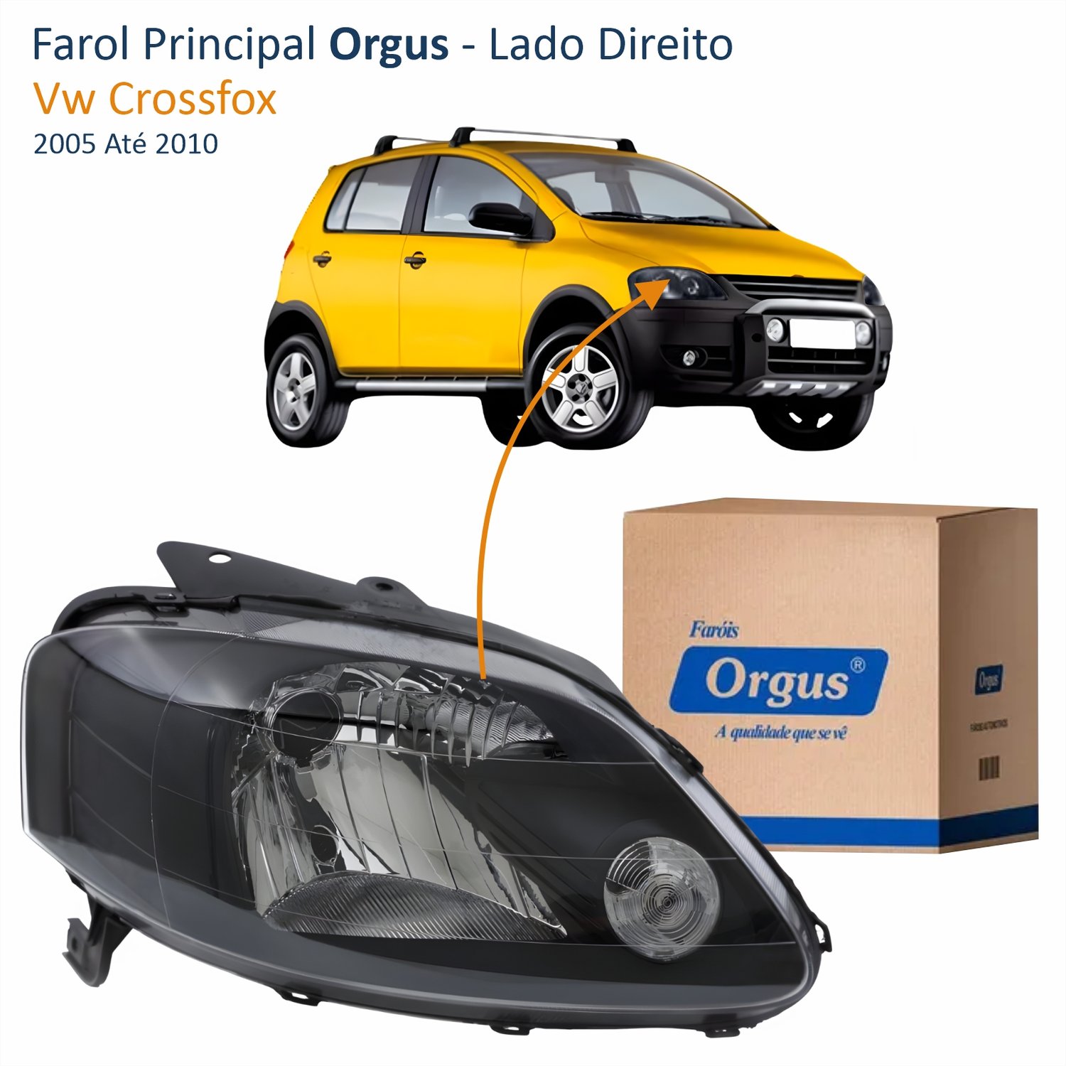 Farol Vw Crossfox 2005 Até 2010 ORGUS Máscara Negra Lado Direito Passageiro