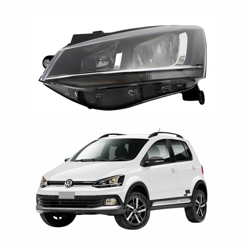 Farol Vw Crossfox 2015 Até 2019 Máscara Negra Friso Cromado Lado Esquerdo Motorista