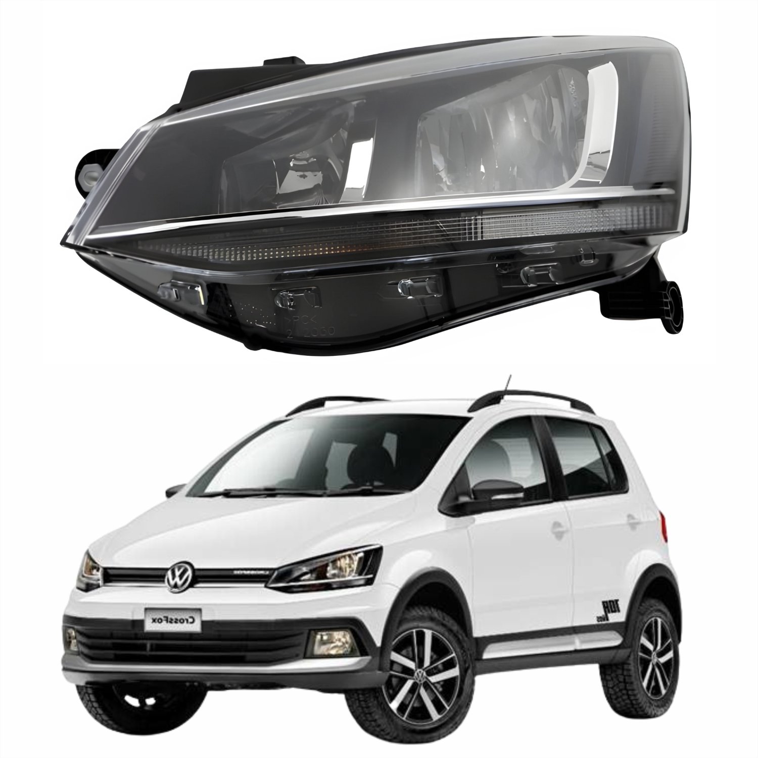 Farol Vw Crossfox 2015 Até 2019 Máscara Negra Friso Cromado Lado Esquerdo Motorista