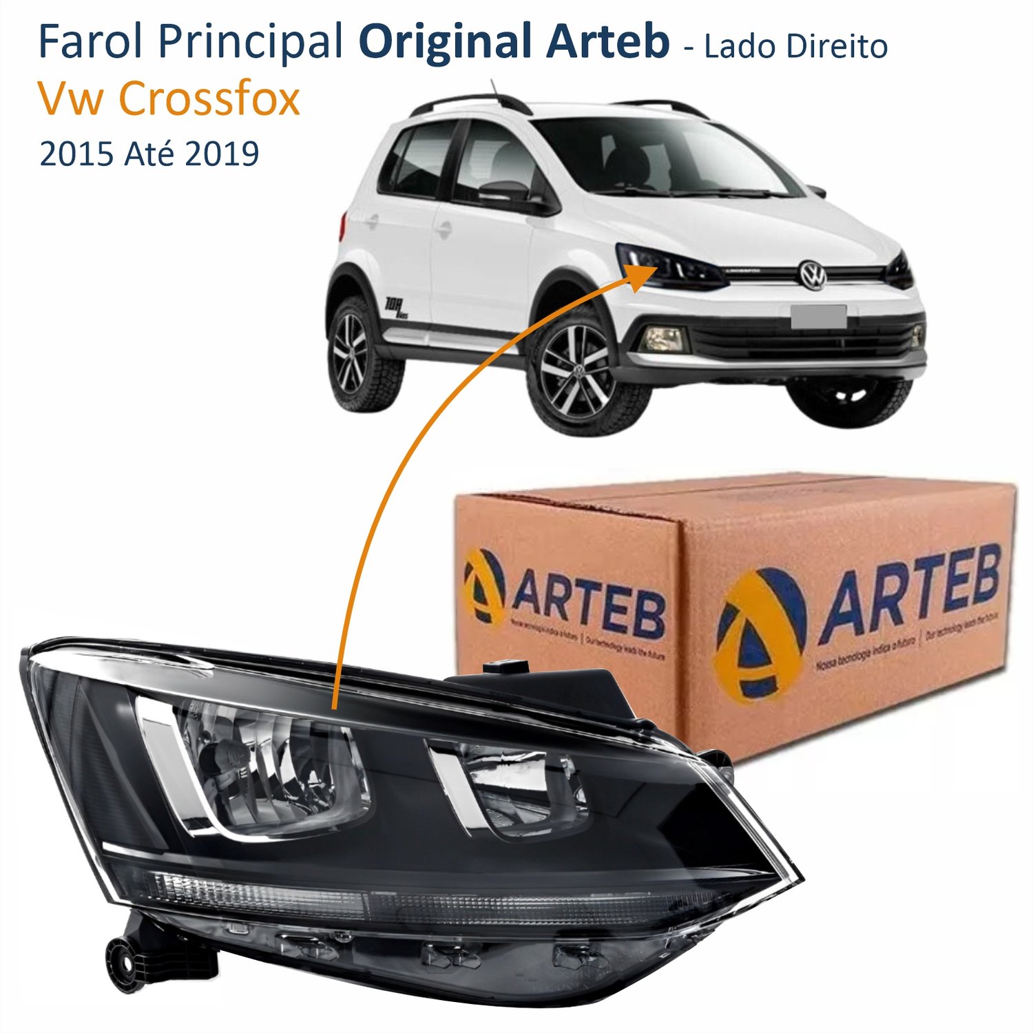 Farol Vw Crossfox 2015 Até 2019 Original Arteb Friso Preto Lado Direito Passageiro