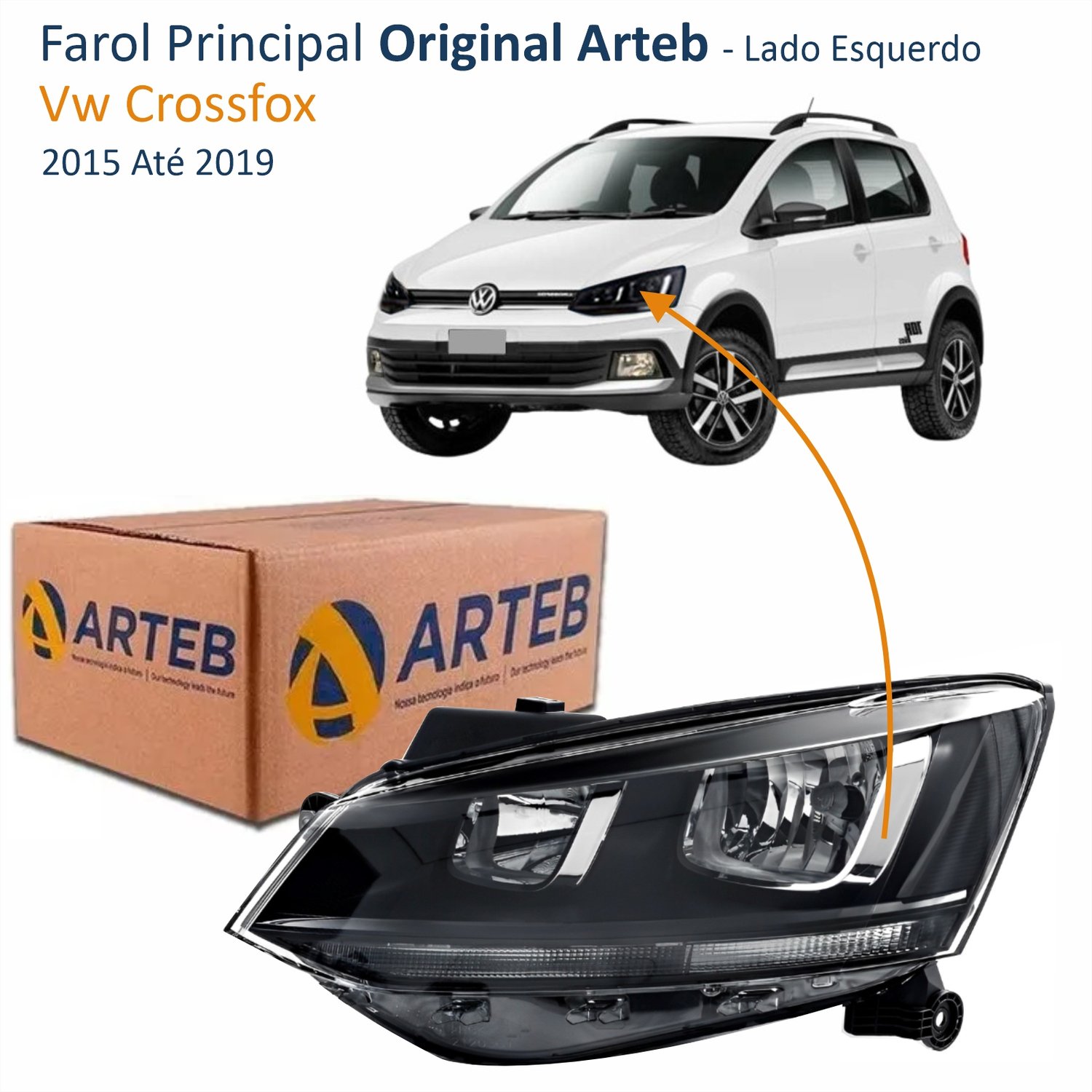 Farol Vw Crossfox 2015 Até 2019 Original Arteb Friso Preto Lado Esquerdo Motorista