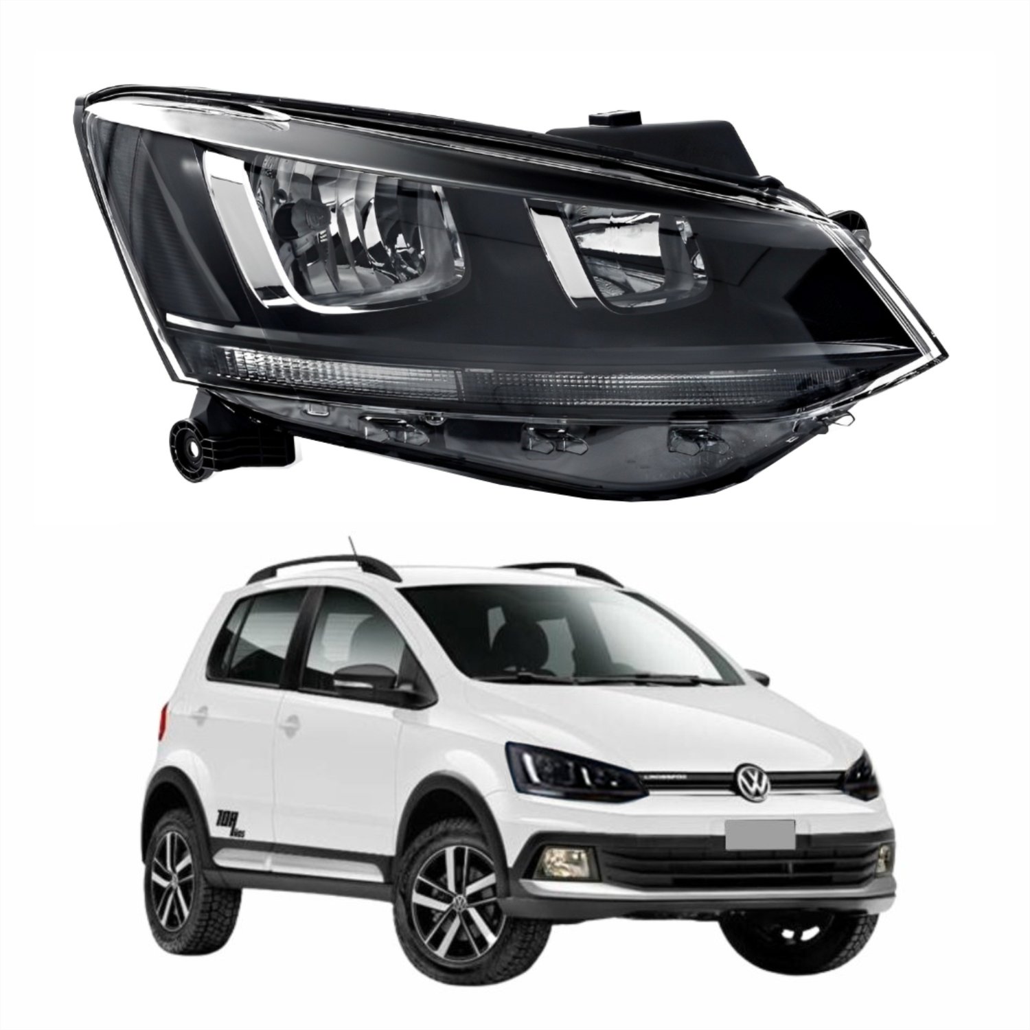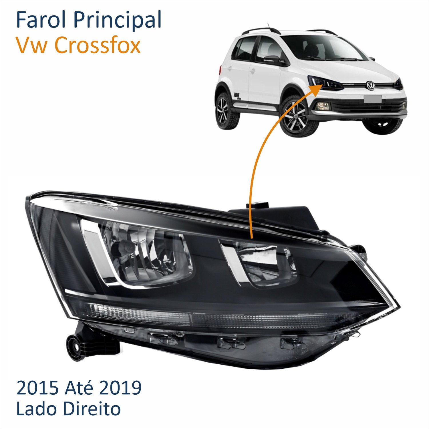 Farol Vw Crossfox 2015 Até 2019 Original Friso Preto Lado Direito Passageiro
