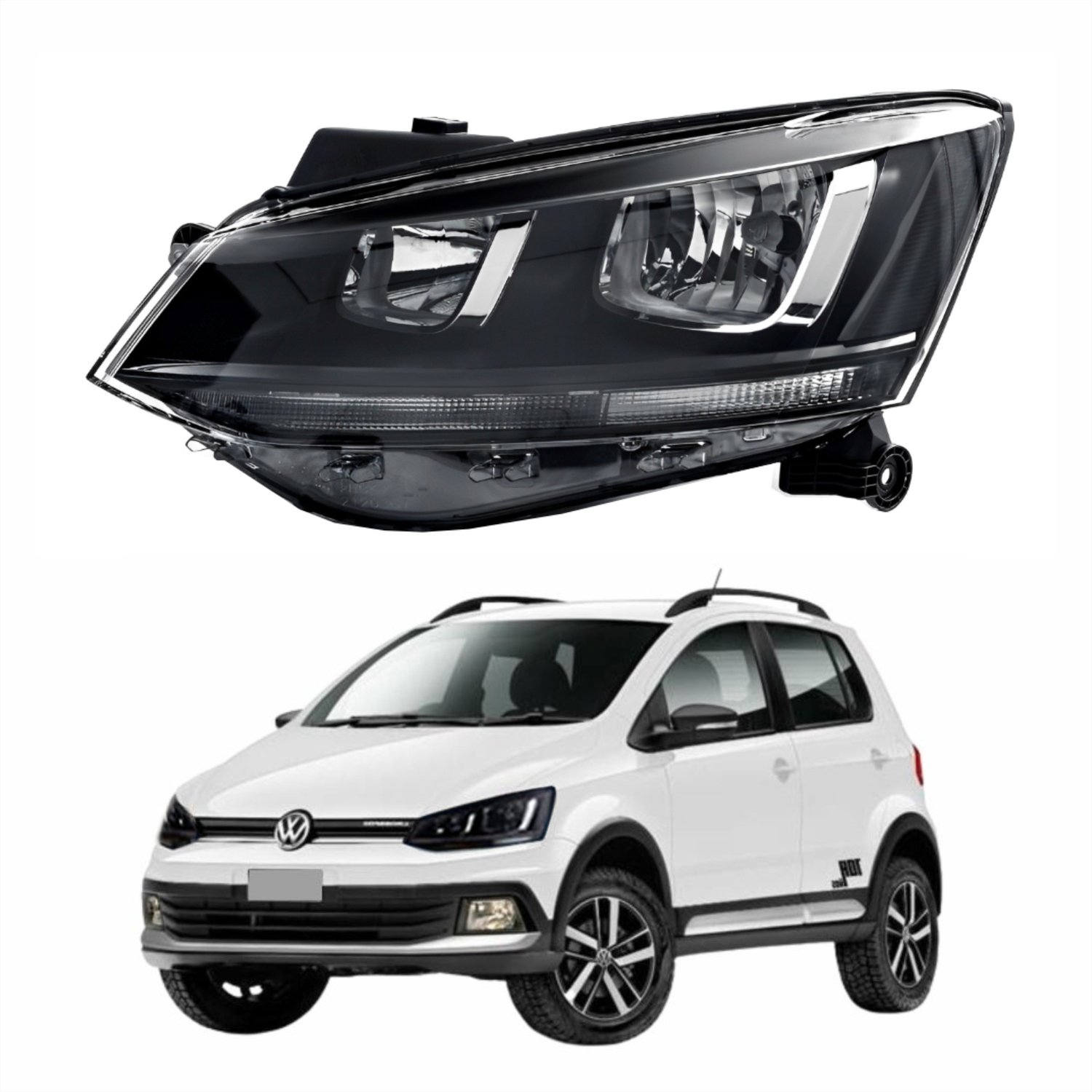 Farol Vw Crossfox 2015 Até 2019 Original Friso Preto Lado Esquerdo Motorista