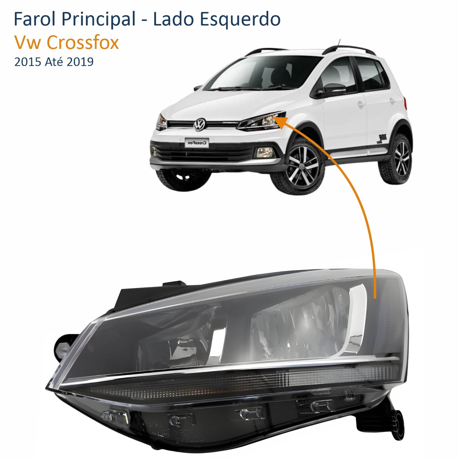 Farol Vw Crossfox 2015 Até 2019 ORIGINAL Máscara Negra Friso Cromado Lado Esquerdo Motorista