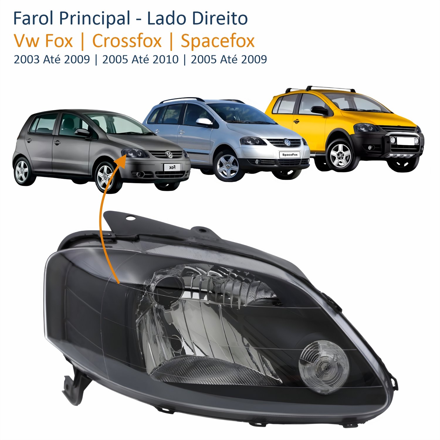 Farol Vw Fox 2003 Até 2009 Crossfox 2005 Até 2010 Spacefox 2005 Até 2009 Máscara Negra Lado Direito Passageiro
