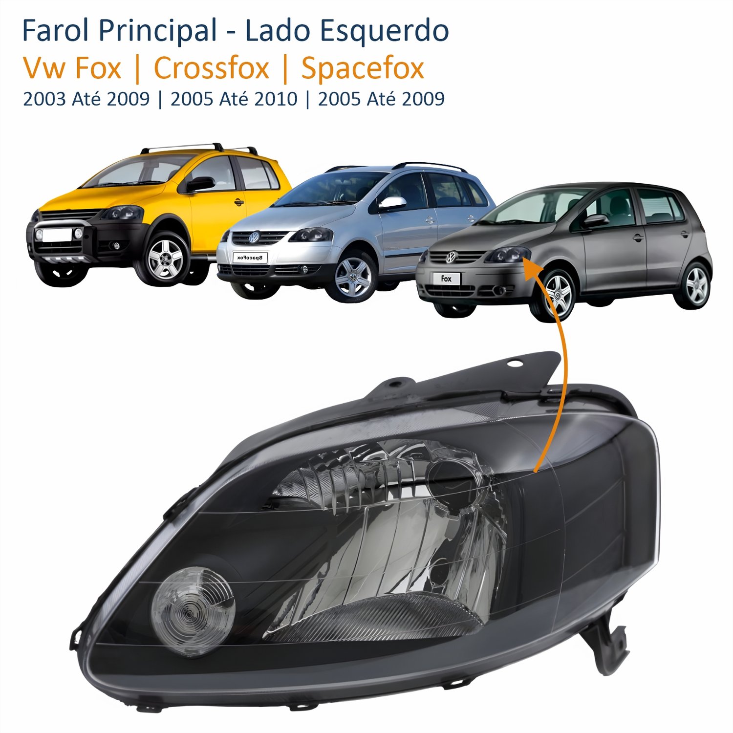 Farol Vw Fox 2003 Até 2009 Crossfox 2005 Até 2010 Spacefox 2005 Até 2009 Máscara Negra Lado Esquerdo Motorista