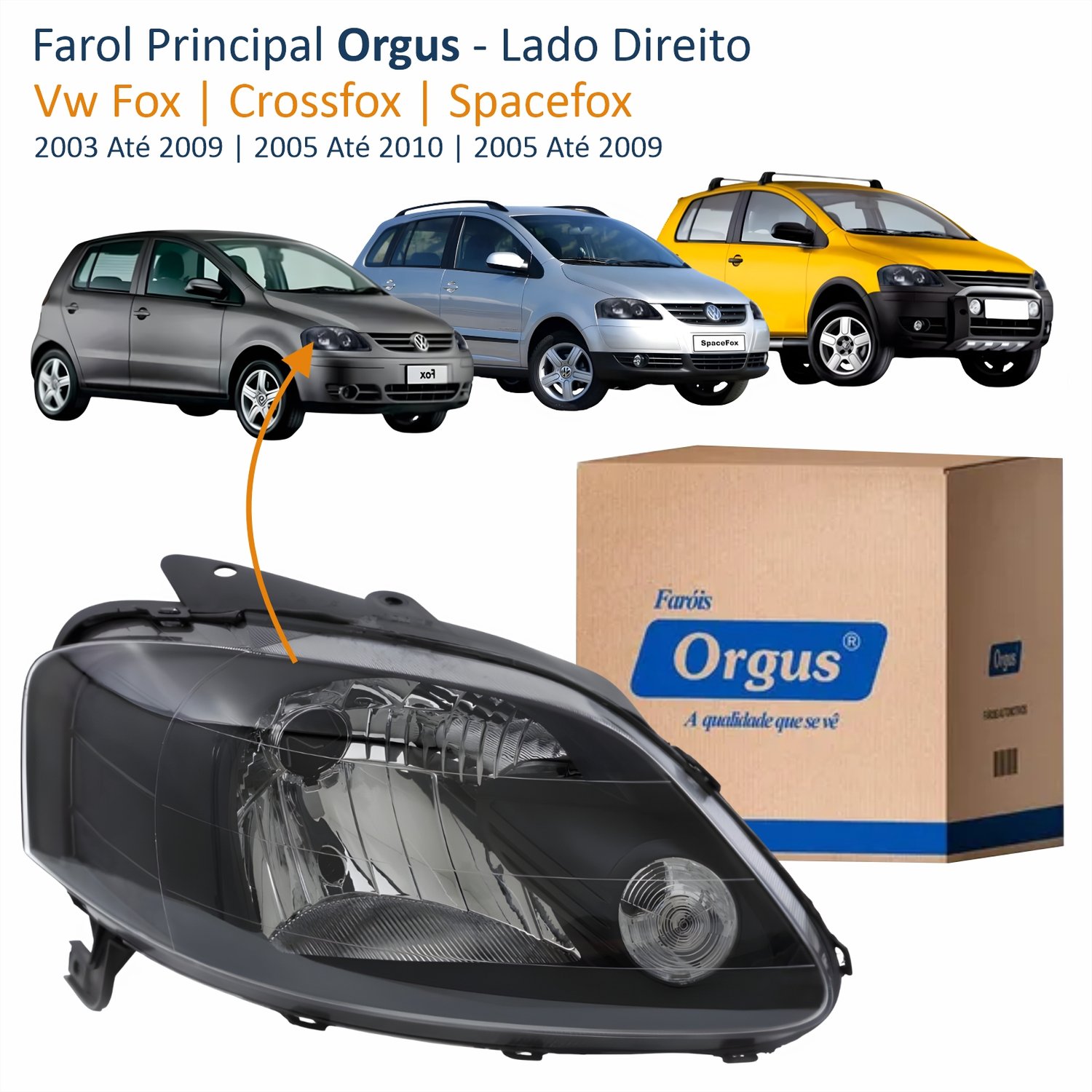 Farol Vw Fox 2003 Até 2009 Crossfox 2005 Até 2010 Spacefox 2005 Até 2009 ORGUS Máscara Negra Lado Direito Passageiro
