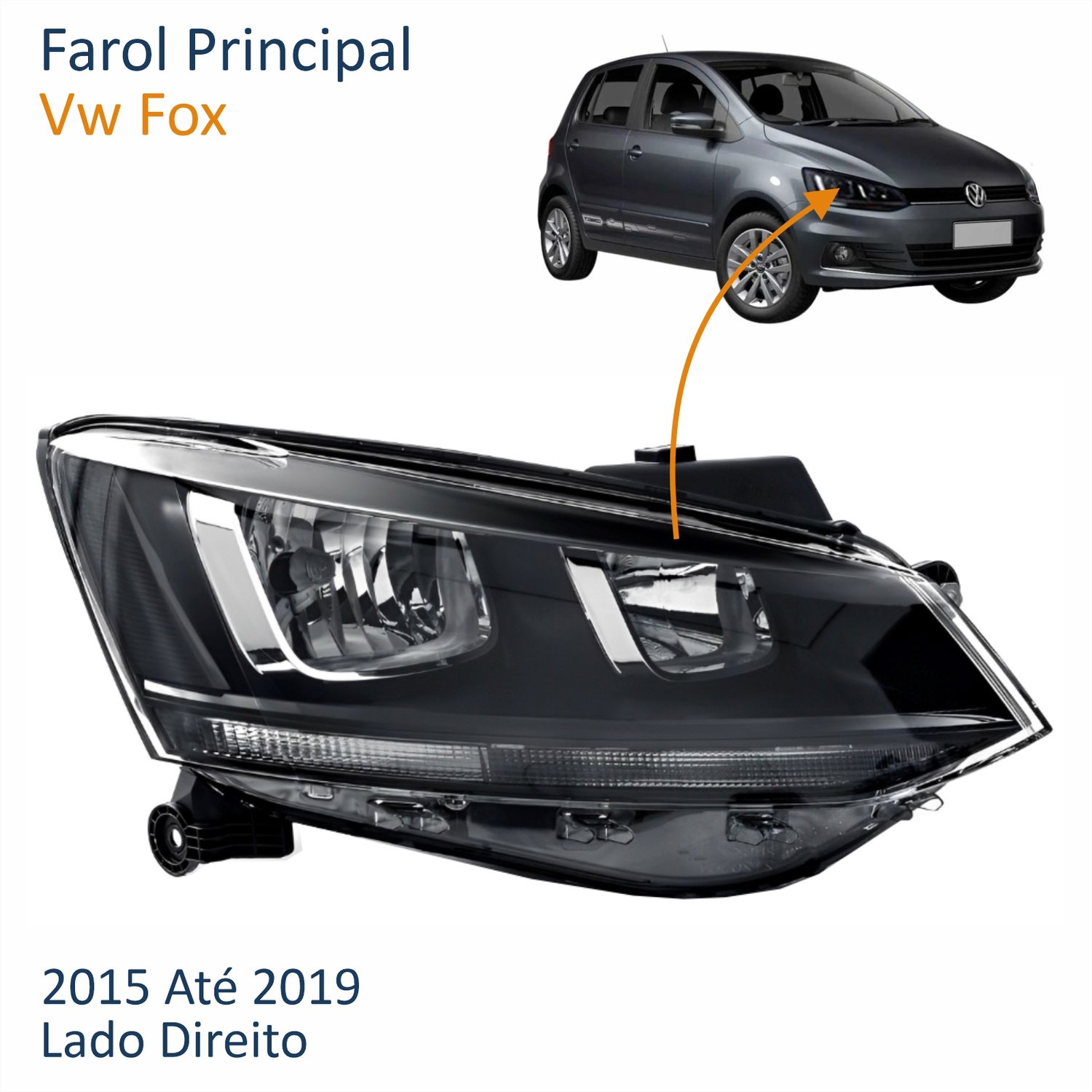 Farol Vw Fox 2015 Até 2019 Friso Preto Lado Direito Passageiro