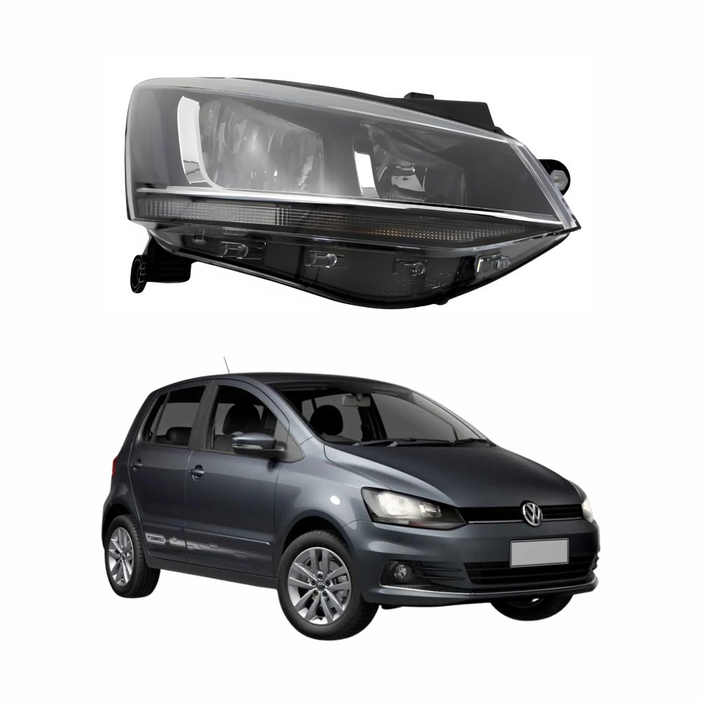 Farol Vw Fox 2015 Até 2019 Máscara Negra Friso Cromado Lado Direito Passageiro