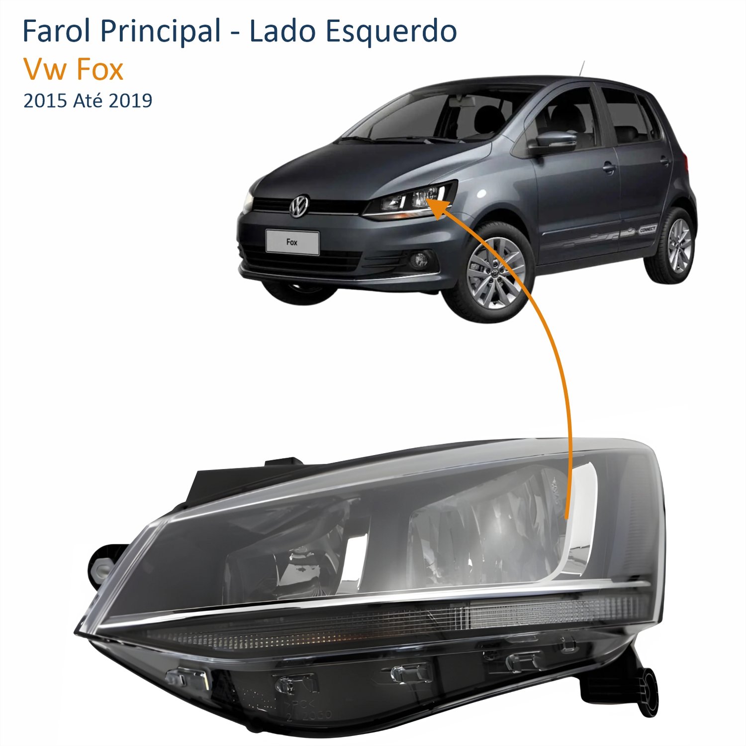 Farol Vw Fox 2015 Até 2019 Máscara Negra Friso Cromado Lado Esquerdo Motorista