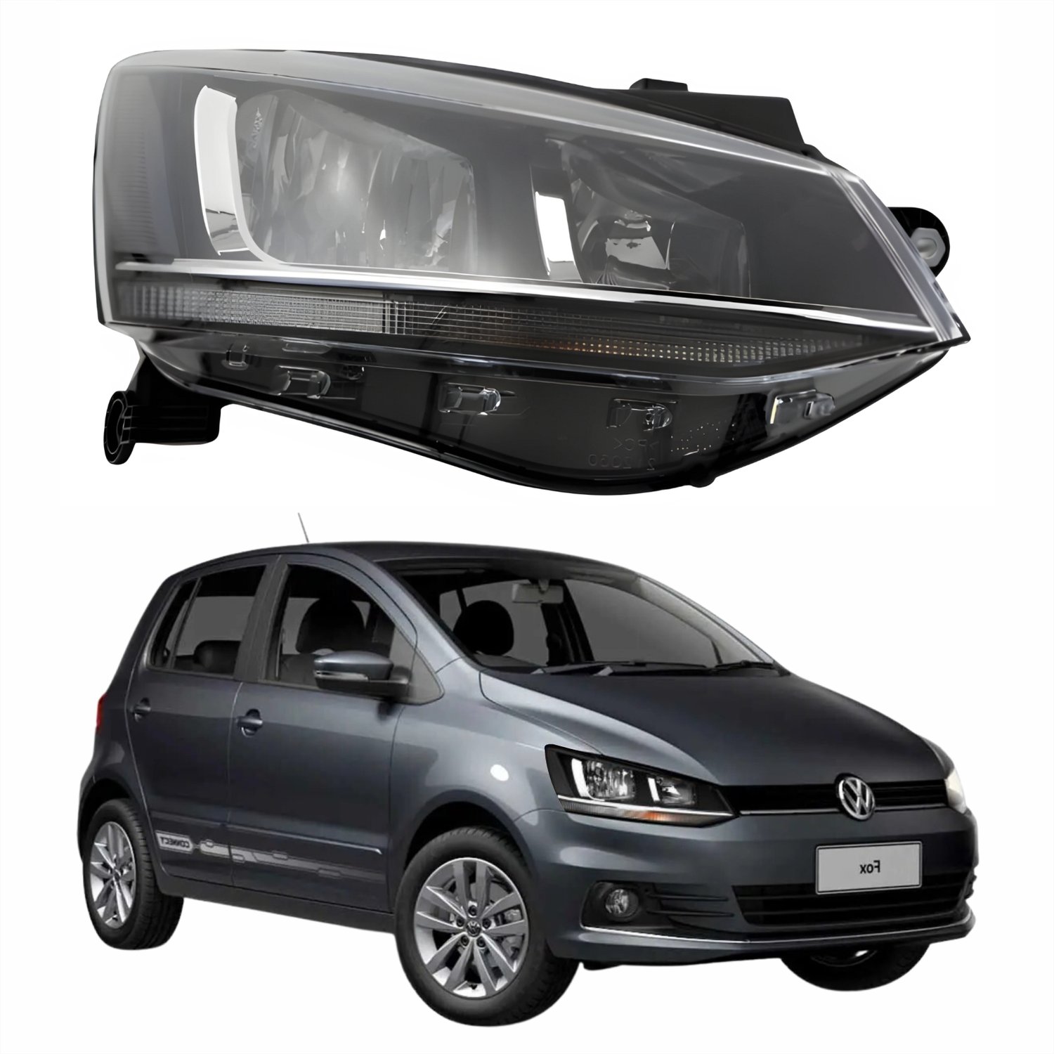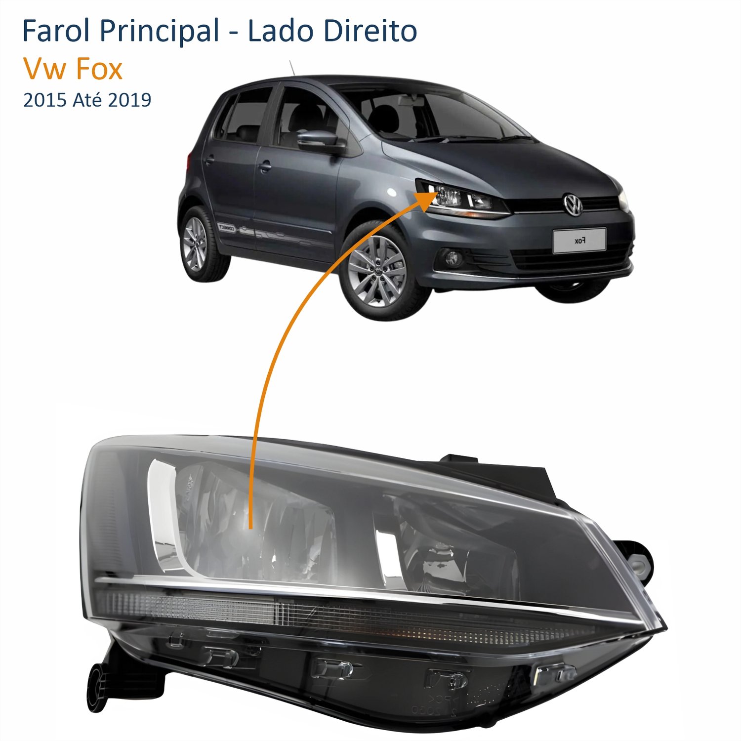 Farol Vw Fox 2015 Até 2019 ORIGINAL Máscara Negra Friso Cromado Lado Direito Passageiro