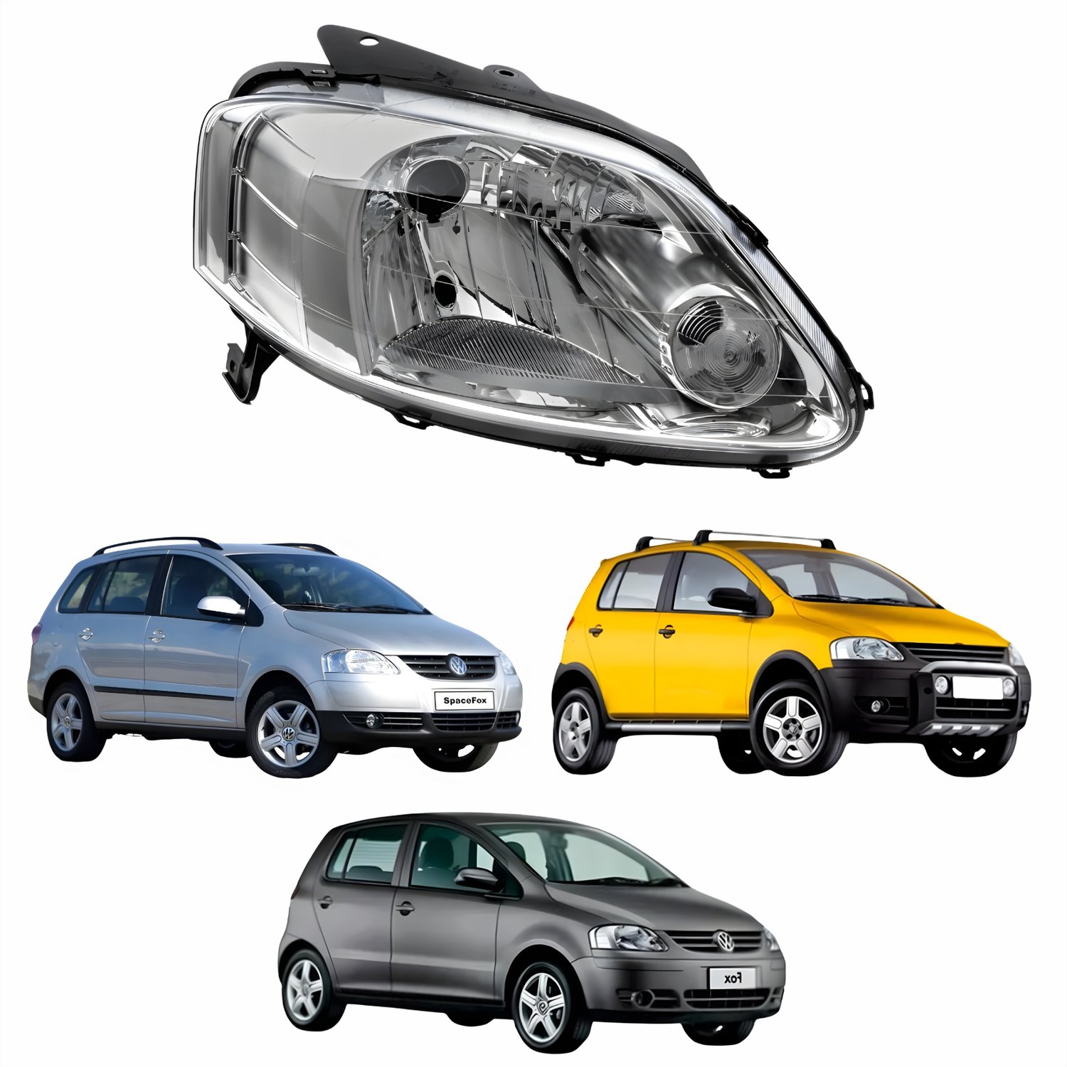 Farol Vw Fox Crossfox Spacefox 2003 Até 2010 Máscara Cromada Lado Direito Passageiro