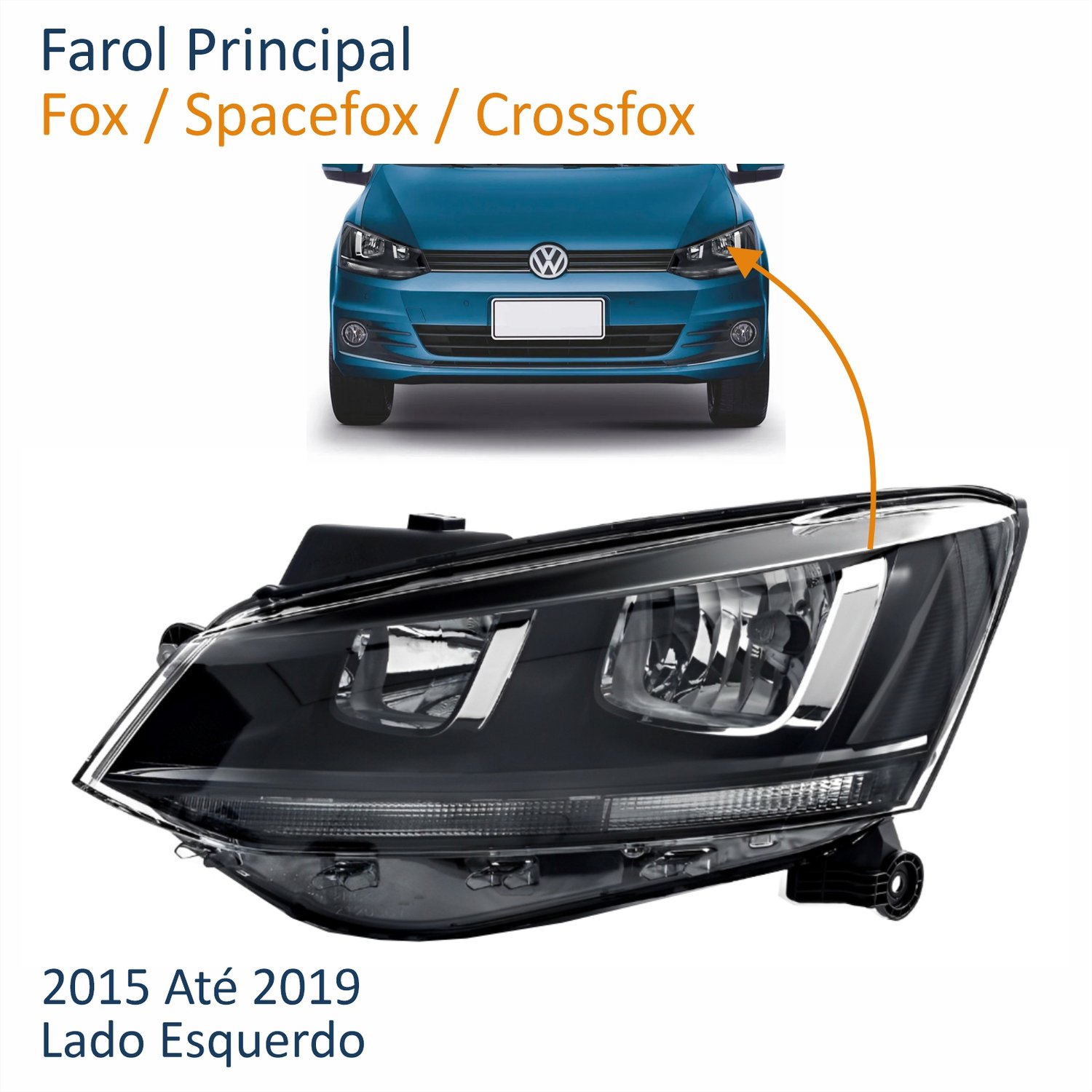Farol Vw Fox Crossfox Spacefox 2015 Até 2019 Original Friso Preto Lado Esquerdo Motorista