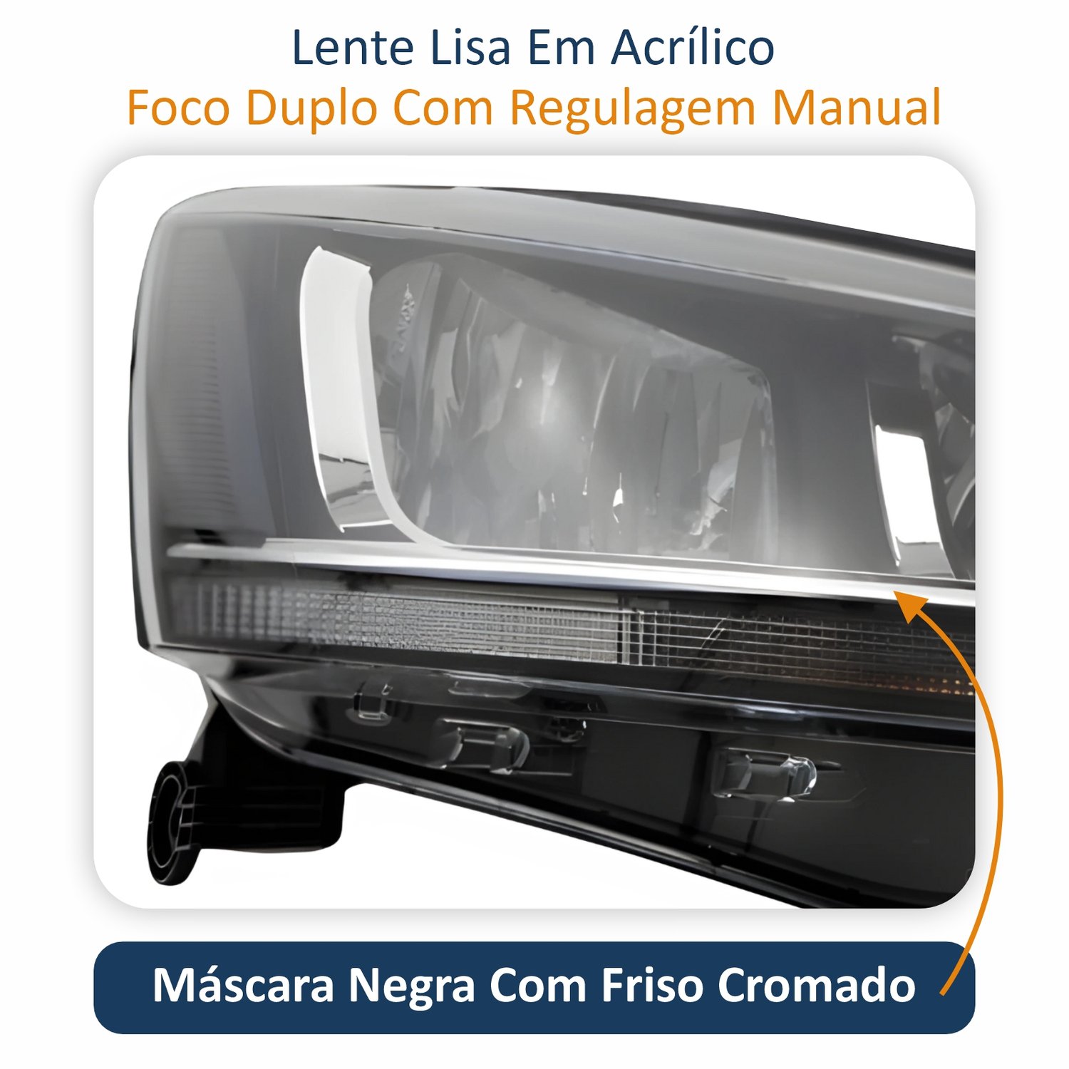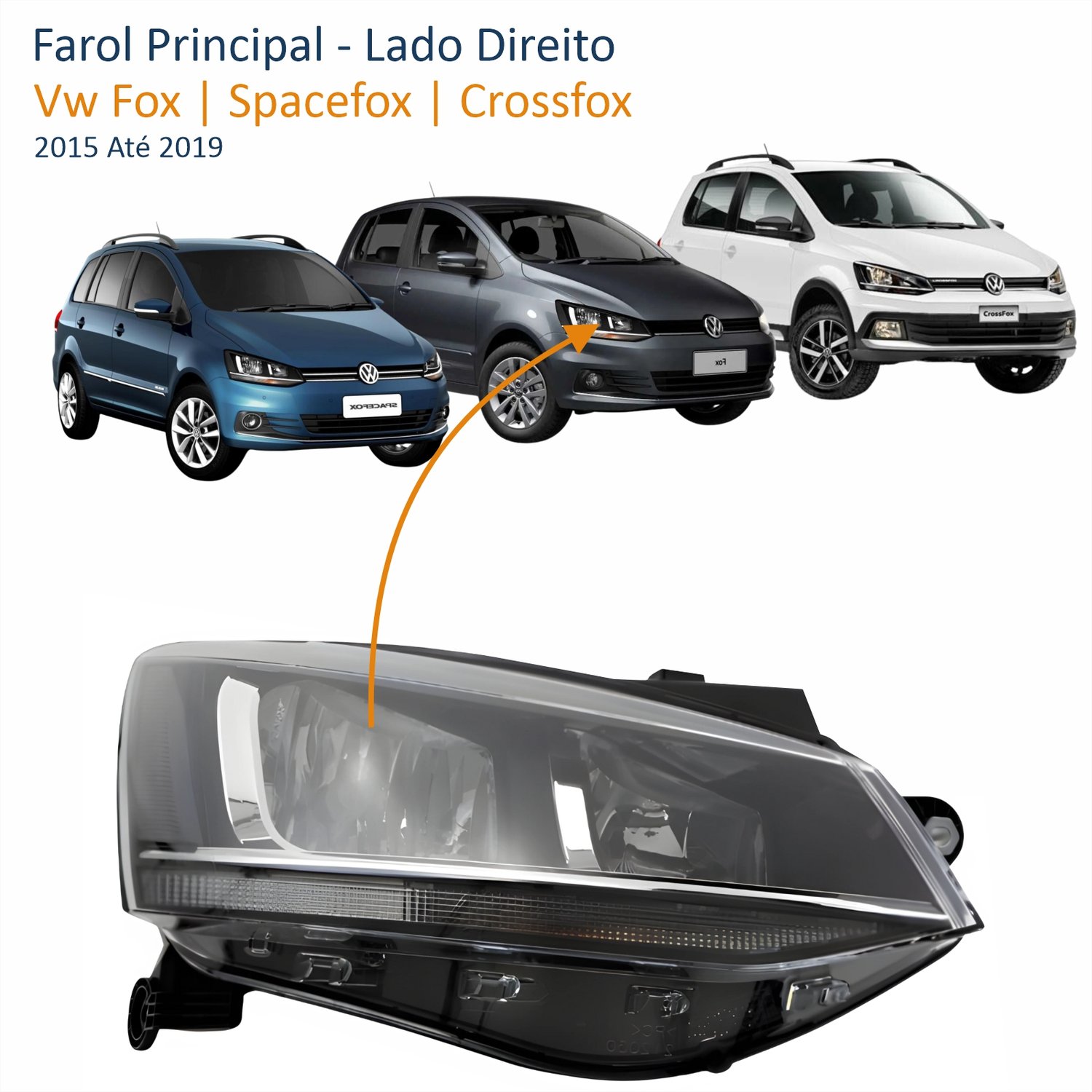 Farol Vw Fox Spacefox Crossfox 2015 Até 2019 ORIGINAL Máscara Negra Friso Cromado Lado Direito Passageiro